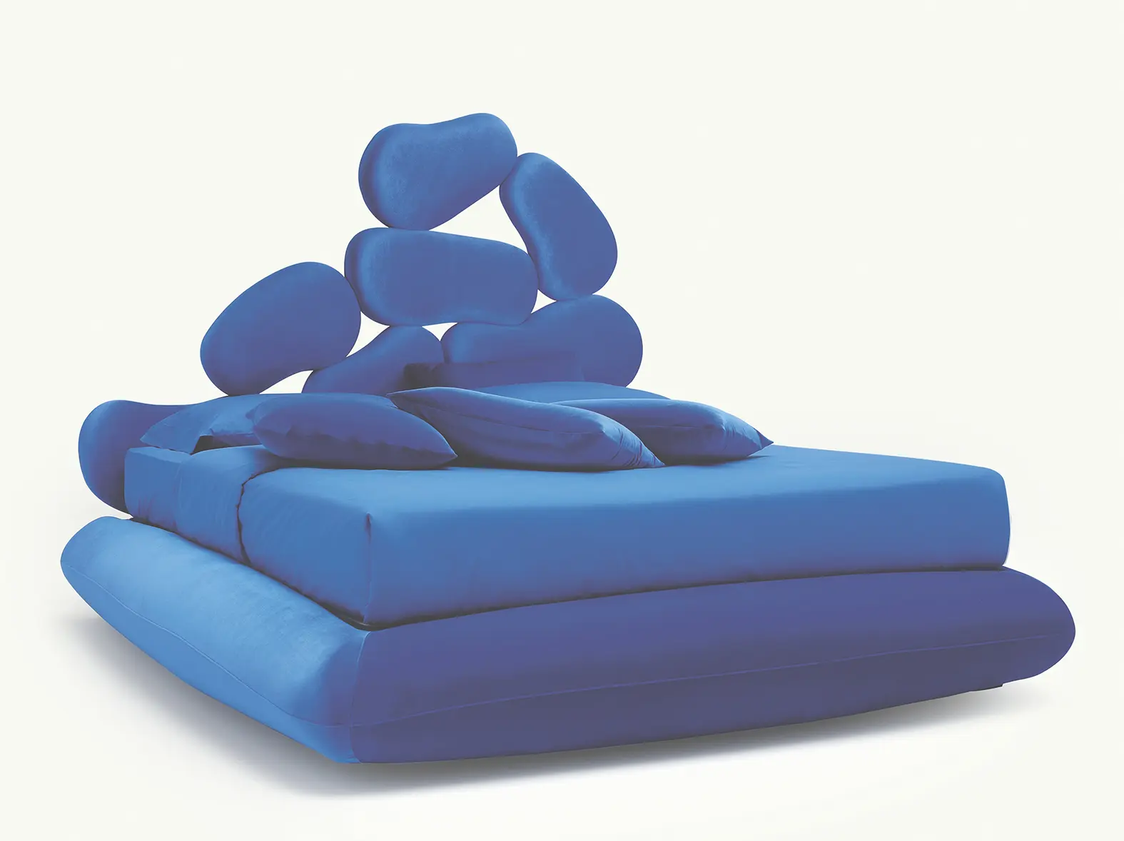 La testata irregolare e scultorea, unica nel suo genere, racchiude un’anima fusion e diviene morbida decorazione per la parete; mentre le forme accoglienti e le dimensioni generose fanno di questo letto un manifesto del relax, dirompente nel design e seducente nell’estetica compatta, densa e materica, in perfetto equilibrio tra forza e leggerezza. In legno e tagliata a pantografo, è rivestita con soffice gomma e, grazie ad una sapiente lavorazione di tappezzeria artigiana, ogni componente assume la forma di una vera e propria pietra.