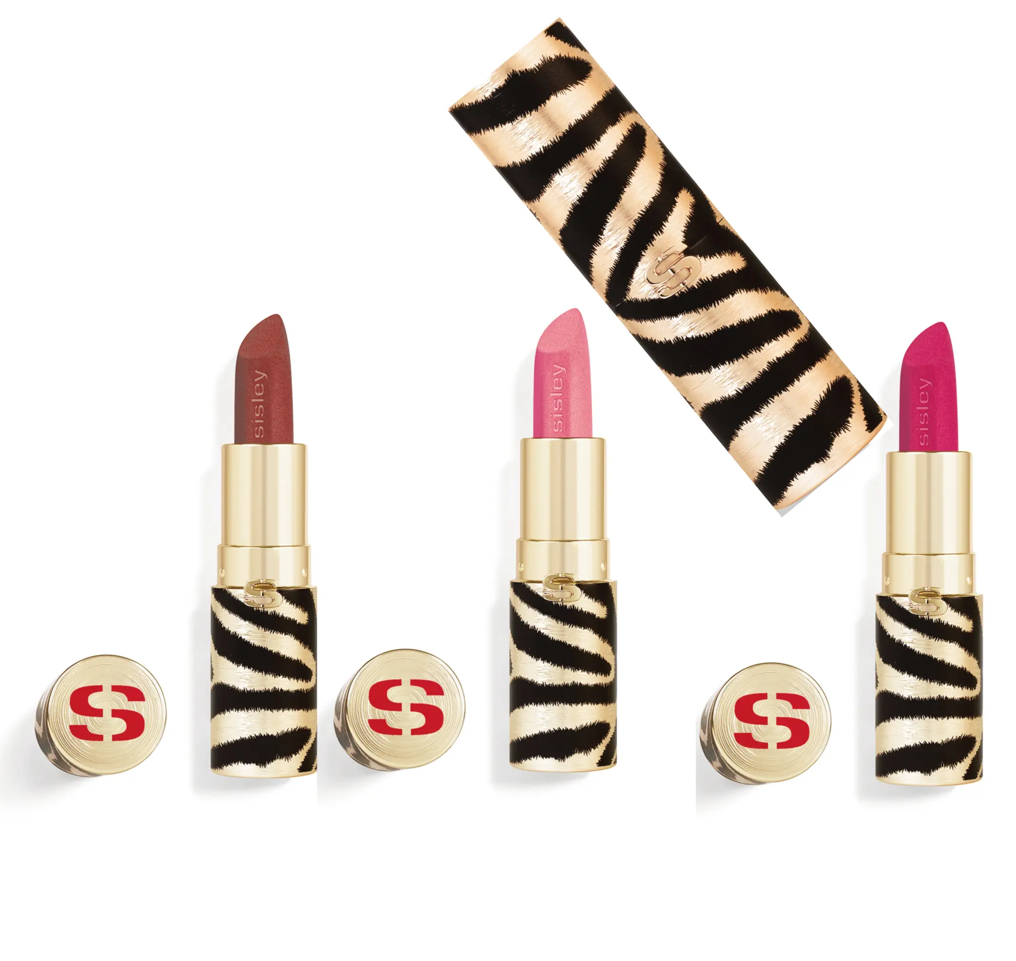 Il packaging dall’elegante decorazione zebrata nero e oro, con la sua finitura satinata opaca simile all’effetto del rossetto, è completato da una delicata chiusura gioiello a “S”.
