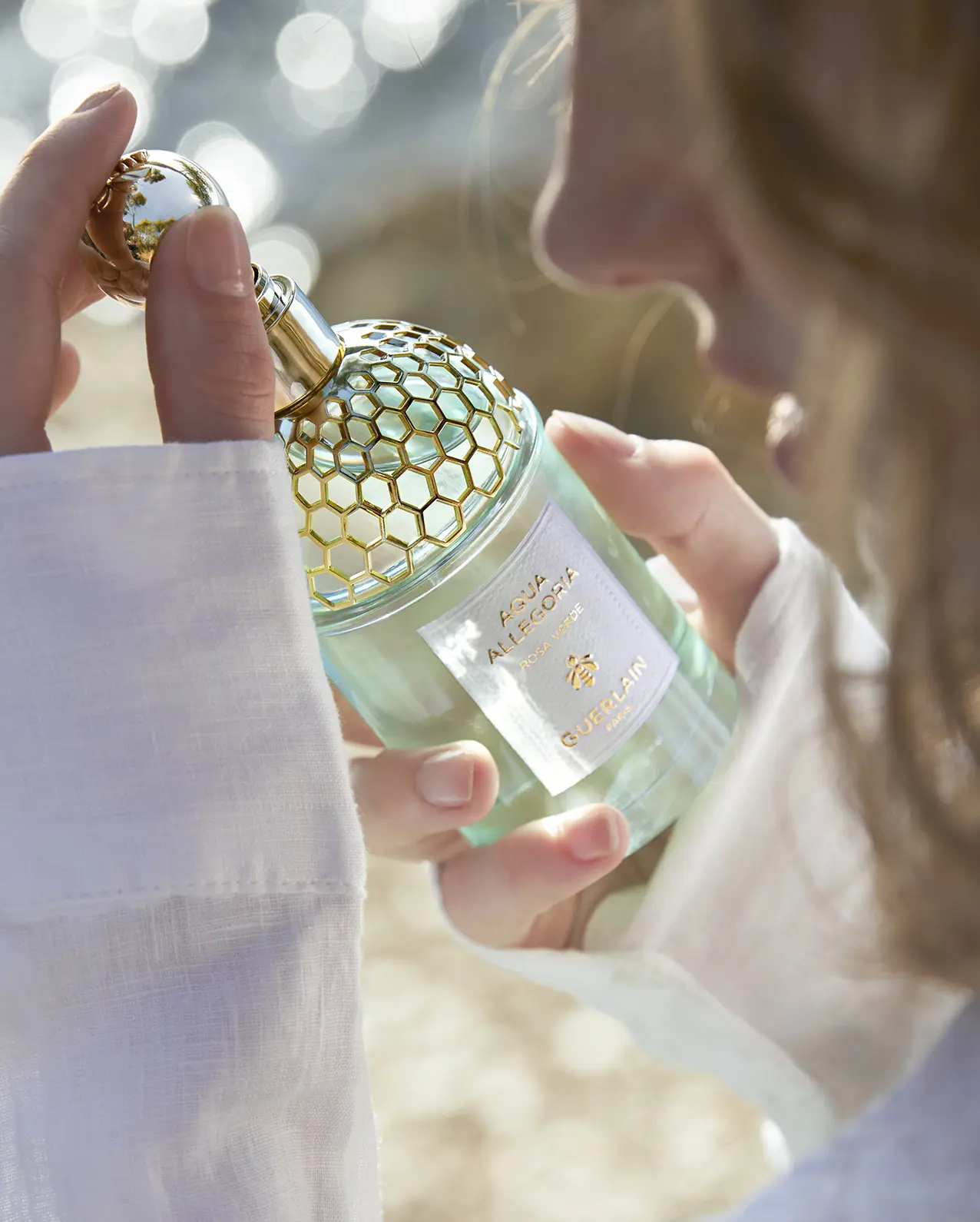 Creata da Delphine Jelk, Guerlain Fragrance Creative Director & Perfumer, Rosa Verde evoca il piacere di un tuffo nell’acqua fresca. Una sensazione rigenerante e incredibilmente energizzante. L’effervescenza del cetriolo incontra la calma avvolgente della rosa, arricchita da delicate sfumature di pera e muschio bianco. Come dopo un’ondata di energia rinvigorente, il corpo, immerso nell’acqua, ritrova la sua armonia: un abbraccio che rilassa e rigenera.