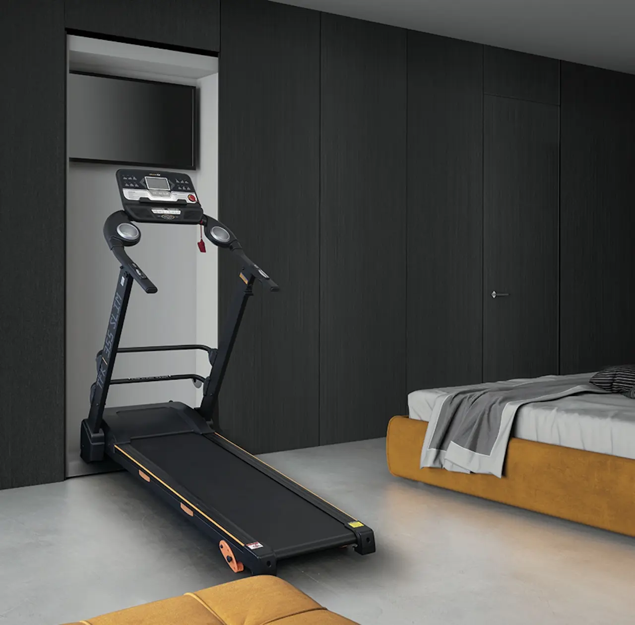 Bigfoot Atene è il modulo studiato appositamente per il fitness, grazie al suo tapis roulant a ribalta che scompare una volta terminata l’attività fisica, passando da un ingombro a terra di 160×70 cm a zero in un gesto. Adatto al controtelaio da 40cm, il modulo è disponibile con un’altezza di 240 cm e una larghezza di 100 cm.
