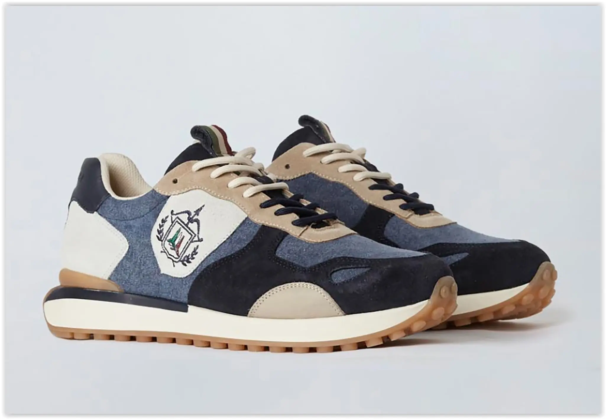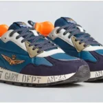 Le tomaie, realizzate in tessuti tecnici di alta qualità, sono arricchite da inserti in suede e morbide nappe stone-washed, creando un contrasto equilibrato tra solidità e morbidezza. Il maxi logo sul cordolo è un segno distintivo, una firma che richiama il DNA inconfondibile del brand e ne rafforza l’identità. Texture decise, materiali performanti e finiture ricercate rendono queste sneakers una sintesi perfetta tra innovazione e praticità.