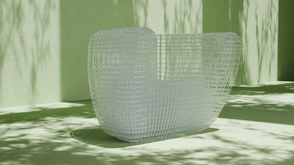 Dalle poltrone lounge ai divani, dalle pareti divisorie ai sistemi di illuminazione, ogni elemento è plasmato attraverso la tecnologia esclusiva del brand: una struttura reticolare interconnessa realizzata con un unico materiale riciclabile, capace di garantire massima leggerezza e resistenza, oltre ad assicurare una sostenibilità progettuale. Un approccio quest’ultimo, che si fonda sulla conservazione del significato e del valore di ogni oggetto, anche quando viene riparato o trasformato attraverso un processo di “distruzione e ricostruzione”, un concetto che richiama la filosofia del Kintsugi.