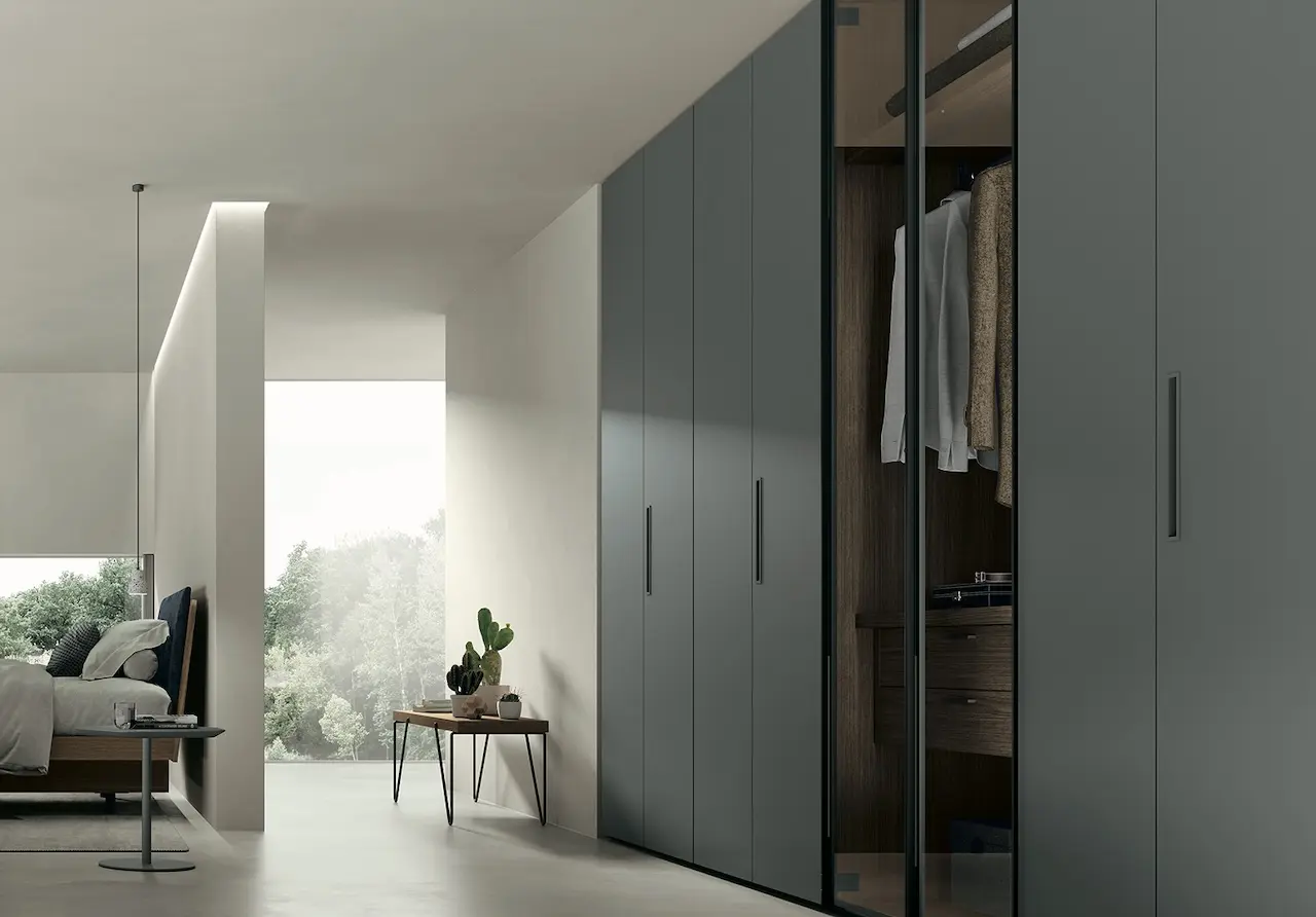 Una caratteristica di Doxa è il fianco con profondità ridotta, che non copre l’intera profondità della cabina e conferisce leggerezza visiva alla struttura. Disponibile in diverse finiture e colori, Doxa può essere adattata perfettamente a vari contesti abitativi e stili d’arredo. La combinazione di estetica, funzionalità e modularità rende questo modello una scelta ideale per chi desidera una cabina armadio dal carattere distintivo e contemporaneo.