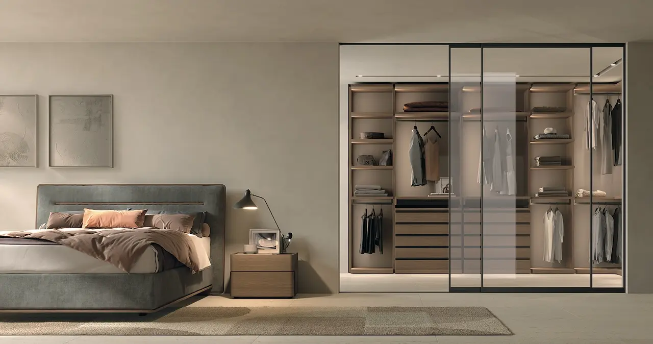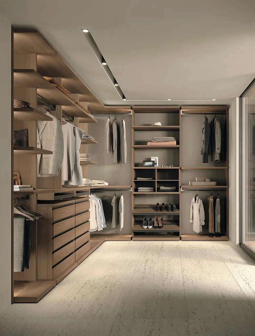 Il nuovo sistema armadi di Tomasella si presenta con un design lineare e moderno, unendo estetica e funzionalità per un perfetto equilibrio. Componibile e modulare, riesce perfettamente ad essere il trait d’union tra zona notte e zona giorno, garantendo versatilità e continuità stilistica. Disponibile con maniglia gola o push & pull, si adatta con eleganza alle diverse esigenze abitative. Curato anche nell’ampia proposta di finiture per l’interno, è attrezzabile con cassettiere, ripiani, luci led e accessori estraibili, sottolineando l’attenzione al dettaglio e all’organizzazione. L’ampia gamma di finiture proposta a catalogo permette la massima personalizzazione.