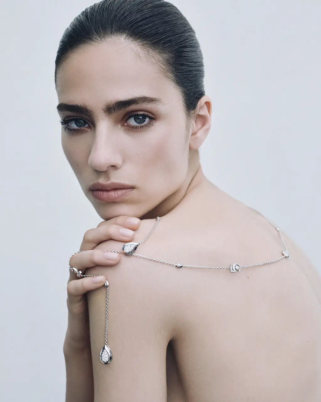 Riprendendo il vocabolario stilistico trasmesso da Gabrielle Chanel, la collana esplora due modi di indossarla: il choker e il choker, per esaltarne la femminilità. Al centro, il numero fortunato di Mademoiselle, interamente tempestato di diamanti, racchiude nella sua curva un diamante centrale da 0,30 ct certificato dal GIA. La bellezza di questa collana risiede nel contrasto tra la purezza della sua linea e la sensualità sprigionata dal numero 5 e dalla sua preziosa goccia. La chiusura invisibile del bracciale, nascosta nel cuore del numero leggendario, si ispira al gesto dell’iconica chiusura della borsa 2.55. Volto della campagna la modella Loli Bahia, che incarna una femminilità potente e sicura di sé.