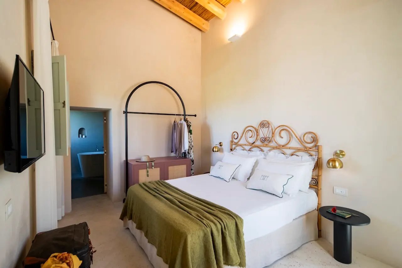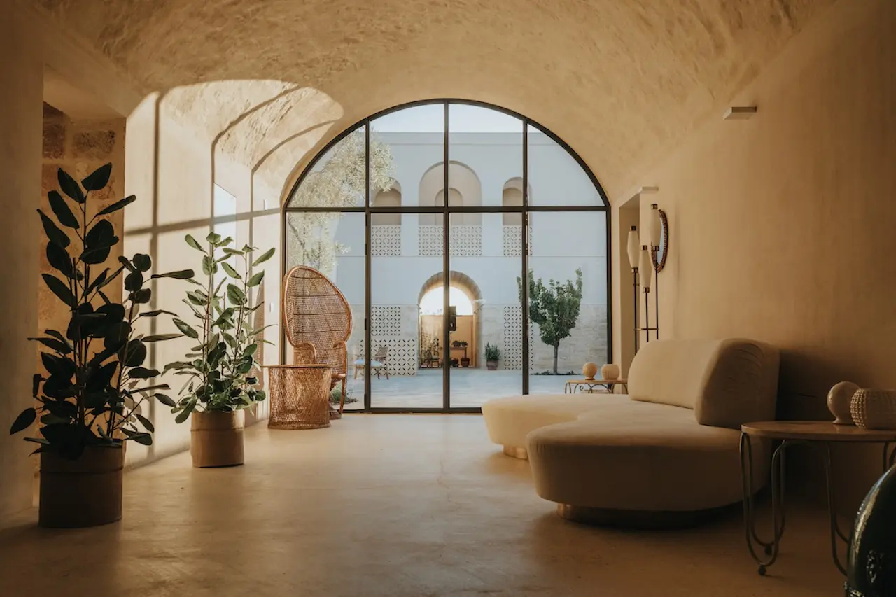 In questa suggestiva oasi rurale che invita al relax e alla rigenerazione, le giornate sono scandite dal canto delle cicale e dalla brezza marina, ed è un piacere godersi ogni angolo della dimora dove storia, natura, design e artigianato si intrecciano in una sinfonia di forme e colori d’artista: il Casino, un tempo residenza estiva di una famiglia aristocratica locale, riprende l’architettura salentina tradizionale nelle sei eleganti camere che conservano il fascino del Salento con volte a botte o a stella, pavimenti in cocciopesto e pareti intonacate a calce; nelle spaziose corti e nelle terrazze panoramiche, nei giardini ornamentali con pergolati, pozzi e sentieri, e nelle tonalità calde e avvolgenti che richiamano i colori della terra ed esaltano la materia.