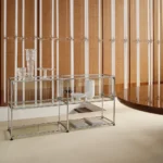Alla base di tutto, una struttura modulare costruita su tre elementi realizzati con materiali di alta qualità: giunzioni in ottone cromato, tubi in acciaio e pannelli in metallo o vetro. Un sistema pensato per durare di generazione in generazione, riconfigurabile all’infinito e capace di adattarsi a ogni evoluzione dello stile di vita.