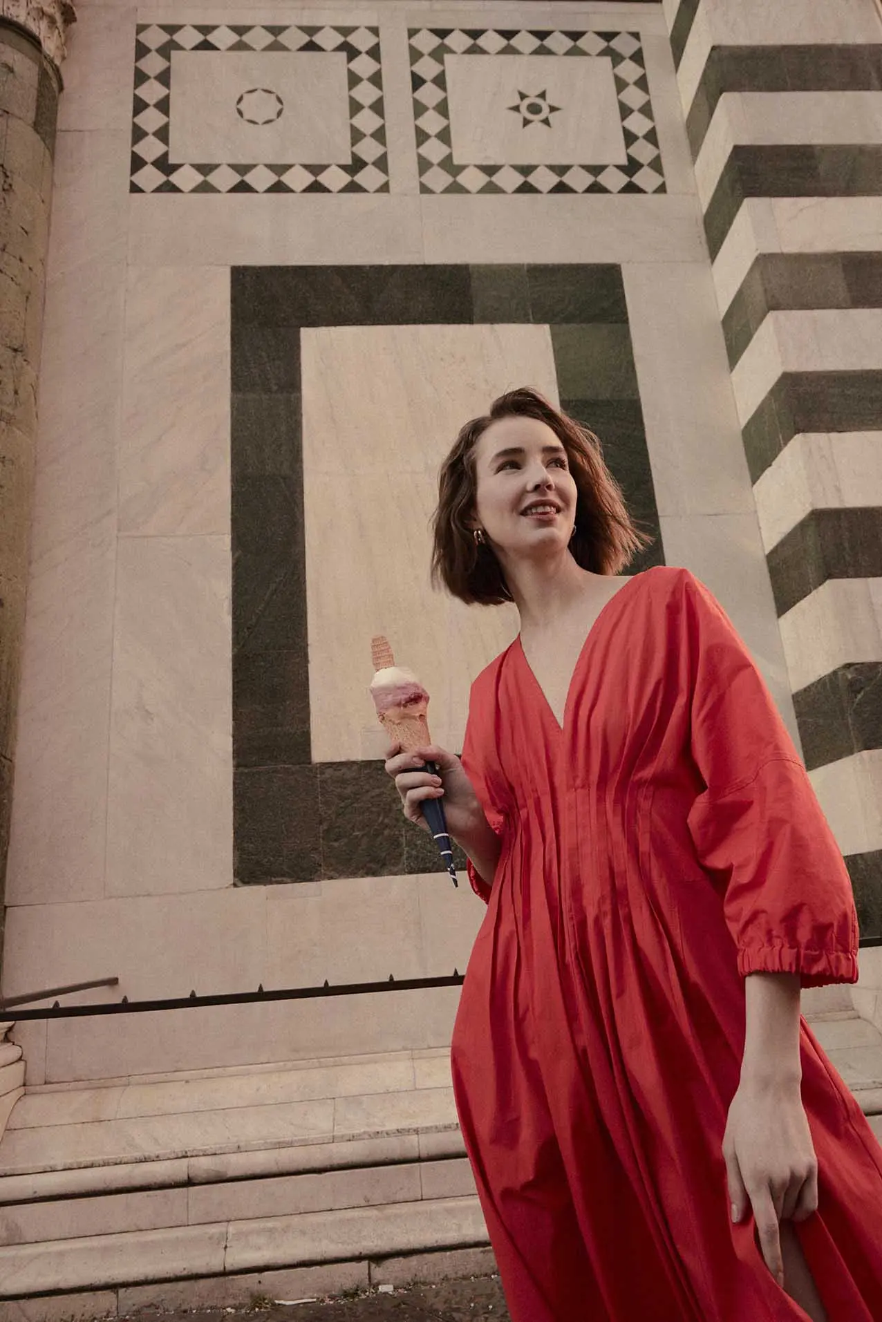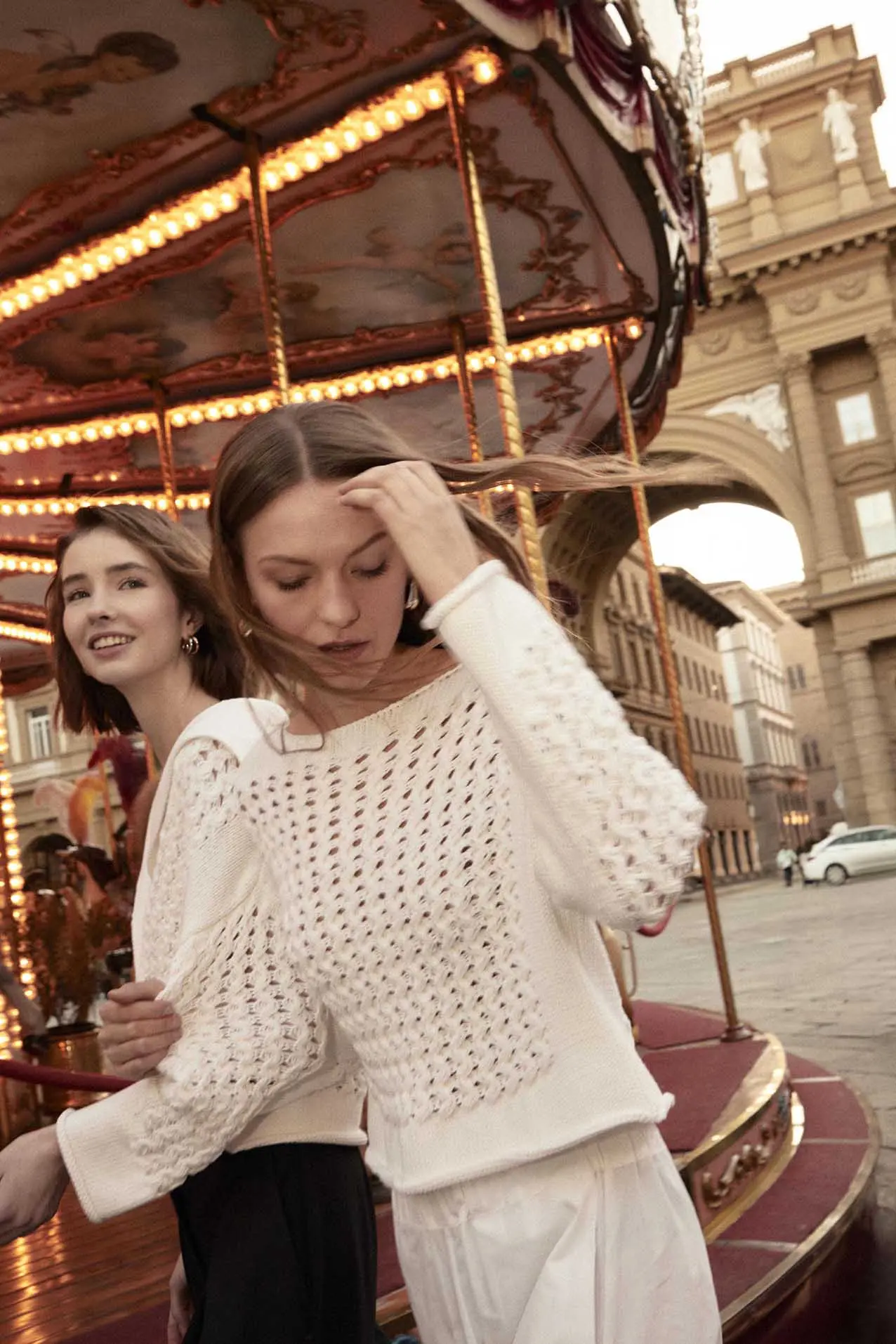 Firenze, culla del Rinascimento e città di Dante, è il cuore pulsante di questa storia di eccellenza. Qui, tra le sue strade e i suoi monumenti, si intrecciano le radici profonde di un patrimonio culturale che si riflette anche nelle lavorazioni squisitamente italiane della maison Malo. Dalle passeggiate sotto gli storici archi di Firenze, con una tipica colazione italiana, passando per il belvedere di Piazzale Michelangelo, fino al cuore della città con la Galleria degli Uffizi e Piazza del Duomo con la maestosa cattedrale di Santa Maria del Fiore. Una sosta sui gradini di San Miniato al Monte prima di un giro in biciletta tra le botteghe storiche del centro, un gelato da assaporare camminando e un aperitivo che sa di primavera. La maglieria in pregiato cashmere Malo della collezione primavera/estate 2025 diventa protagonista di una storia tutta italiana.