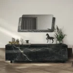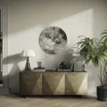 Living funzionale ed elegante. Le madie Diamond e Opera combinano capienza e impatto estetico: la prima in finitura laccata opaca effetto ossidato, la seconda in vetro lucido con stampa digitale effetto marmo. Soluzioni perfette per organizzare lo spazio con stile.