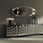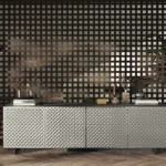 Ingresso con personalità. La prima impressione è quella che conta. I modelli Glow e Net, rispettivamente con ante in vetro specchiato bombato e con trama a rombi, trasformano l’area di accoglienza in uno spazio sofisticato e luminoso. Ideali per riporre gli oggetti di uso quotidiano, aggiungono all’ambiente un tocco di eleganza e identità fin dal primo sguardo.