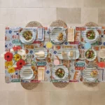 Il food gioca un ruolo centrale, trasformando in oggetti decorativi e idee regalo le famose sardine in scatola, simboli della tradizione locale, e altre delizie grafiche che richiamano la vivacità dei mercati e il piacere della convivialità. Non mancano i richiami al mondo dei pescatori, spunti per un’affascinante narrazione visiva. La tavola si anima di silhouette a colori pastello, piatti sagomati e disegni di acciughe, mentre i servizi di piatti in melamina – materiale leggero e resistente, perfetto per l’outdoor – sono decorati con motivi che richiamano le ceramiche fatte a mano. Le tovaglie si fanno giocose, abbinate a strofinacci, runner e tovagliette che esaltano il tema marino. Il richiamo arriva anche sui cuscini, vestiti di stelle marine e conchiglie. Completano la collezione vivaci accenti pop: disegni folk, cuori decorativi e originali ventagli artigianali proposti nelle fantasie piastrelle, tropicale e corallo, con montatura in legno e cordino colorato.