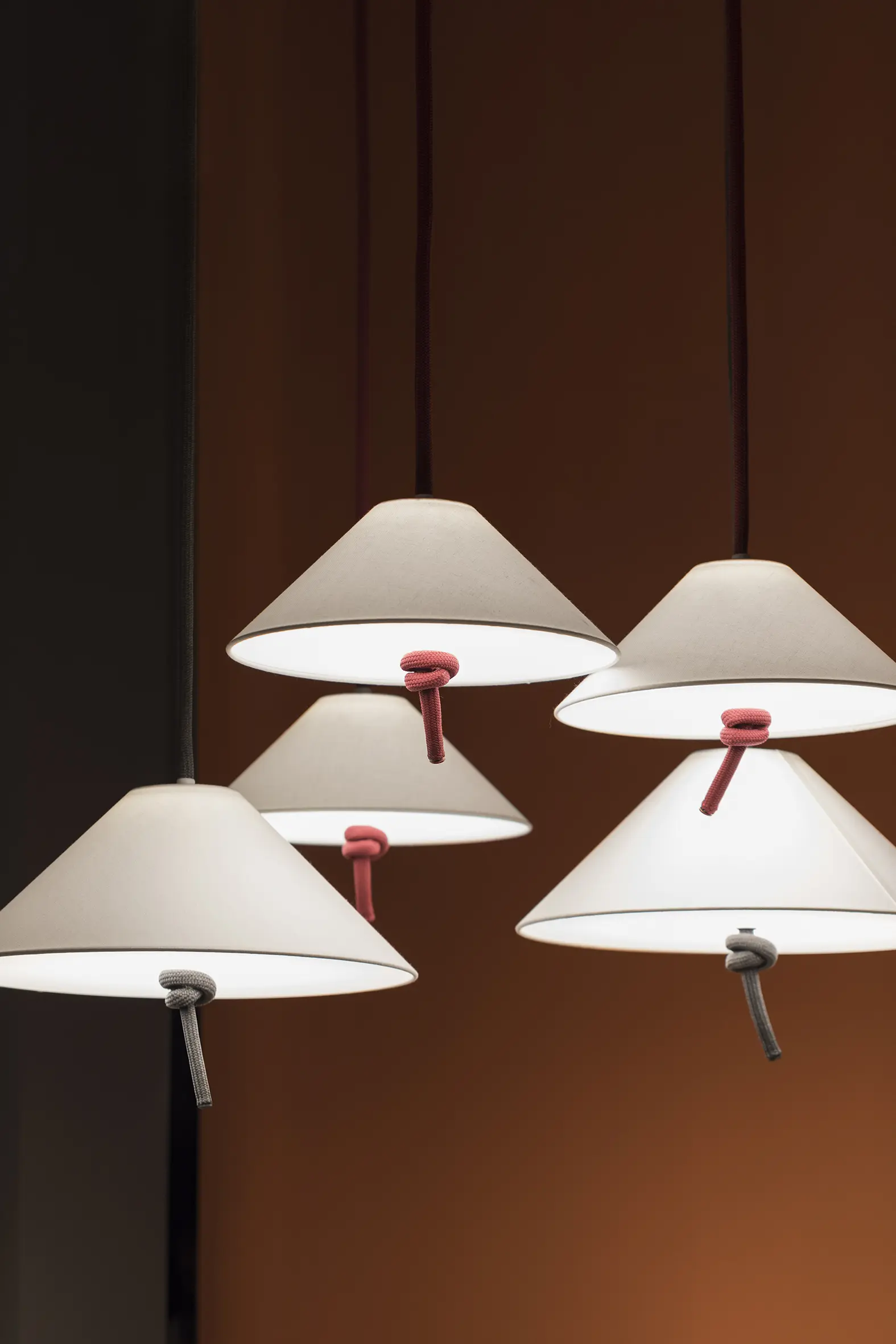 Per garantire massima versatilità, la base in corda è abbinata a paralumi di diversi materiali che aggiungono una nota di leggerezza, creando un contrasto inatteso tra struttura materica e texture ricercate. Una possibilità di personalizzazione che consente di adattare la collezione a molteplici ambienti, dal residenziale all’hospitality. Con la sua essenza raffinata e il suo carattere senza tempo, HAT esprime un design capace di illuminare ogni spazio con sobrietà, adattandosi con naturalezza a contesti diversi.