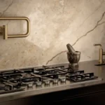 Una finitura dal carattere profondo: Dark Brass spazzolato unisce sfumature calde a tonalità scure. La speciale finitura PVD spazzolata affascina per la texture setosa e lo sfaccettato gioco di colori. Una finitura capace di conferire carattere ad ogni progetto cucina, dai più minimalisti ed eleganti a quelli più espressivi e opulenti. In particolare, in abbinamento a legni scuri, pietre naturali o elementi metallici, crea accostamenti raffinati che si inseriscono perfettamente negli interni contemporanei.