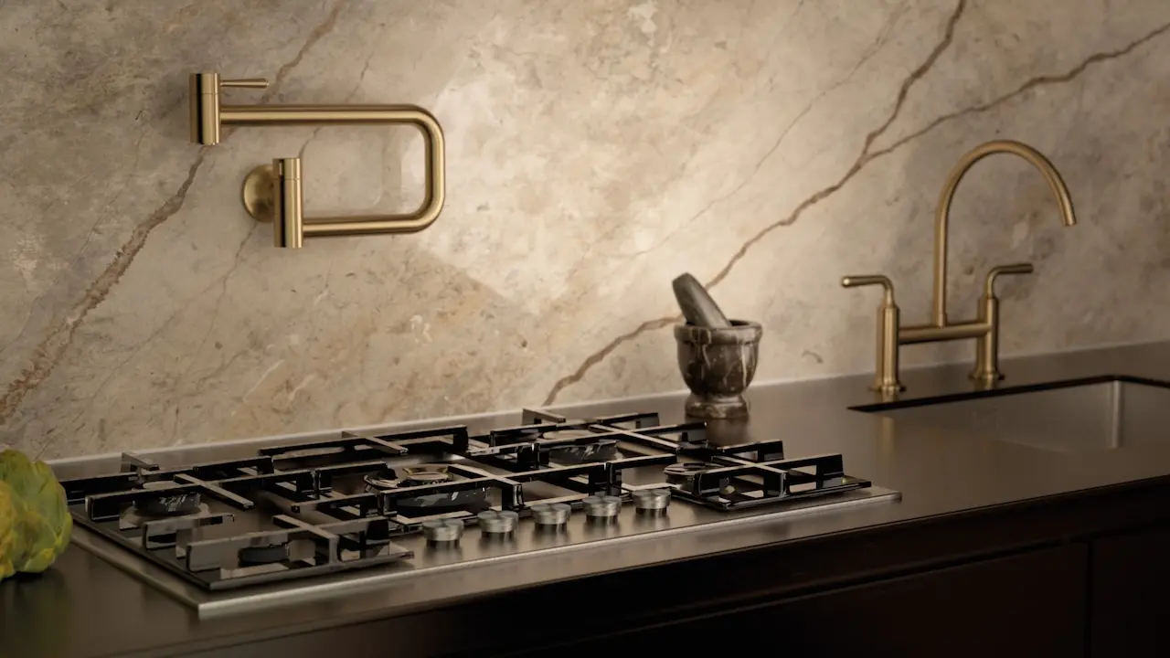 Una finitura dal carattere profondo: Dark Brass spazzolato unisce sfumature calde a tonalità scure. La speciale finitura PVD spazzolata affascina per la texture setosa e lo sfaccettato gioco di colori. Una finitura capace di conferire carattere ad ogni progetto cucina, dai più minimalisti ed eleganti a quelli più espressivi e opulenti. In particolare, in abbinamento a legni scuri, pietre naturali o elementi metallici, crea accostamenti raffinati che si inseriscono perfettamente negli interni contemporanei.