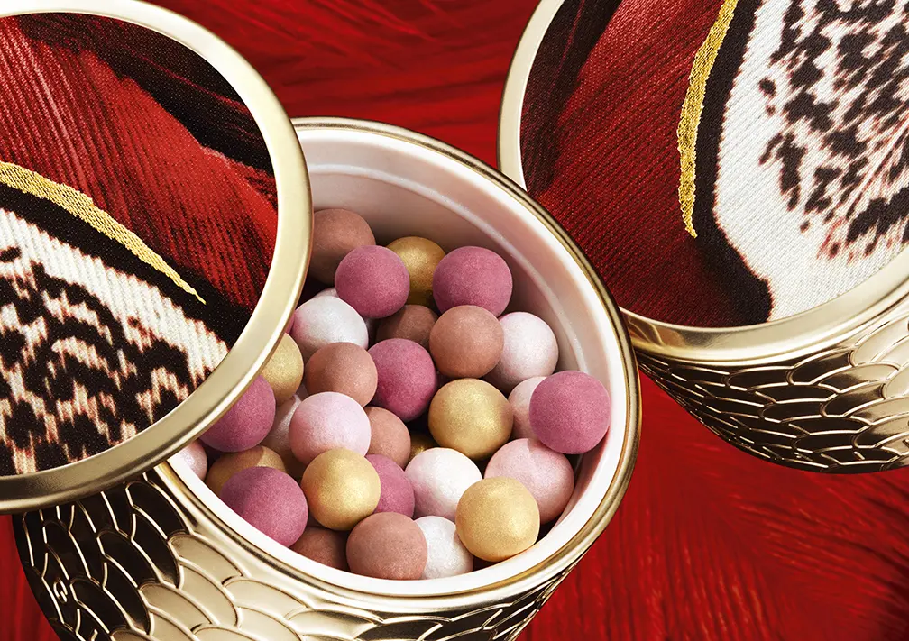 Le Météorites Phoenix, perle di poudre rivelatrici di luminosità, create per questa edizione limitata, presentano due nuove tonalità dai toni vivaci, un rosa magenta e un beige nude, per fissare e opacizzare l’incarnato, sublimandolo con un glow unico.
