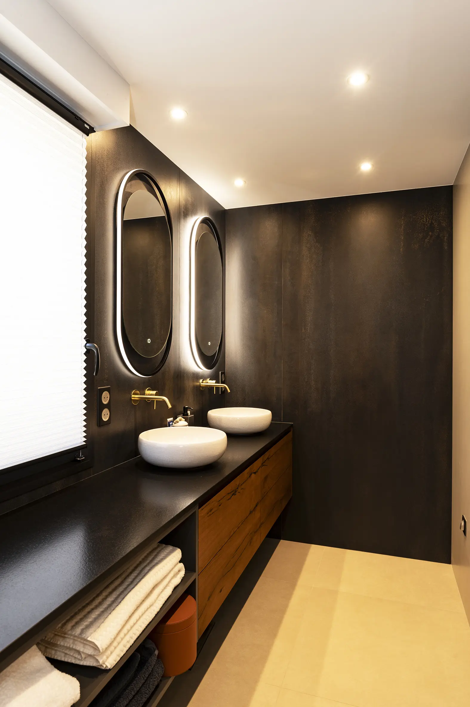 La collaborazione con Studio Cameleon Design si è rivelata particolarmente sinergica. Il team multidisciplinare, composto da decoratori, grafici e project manager, ha saputo integrare il valore tecnico ed espressivo delle ceramiche FAP nel disegno complessivo della villa, valorizzando il potenziale delle superfici attraverso una progettazione puntuale e curata nei minimi dettagli.