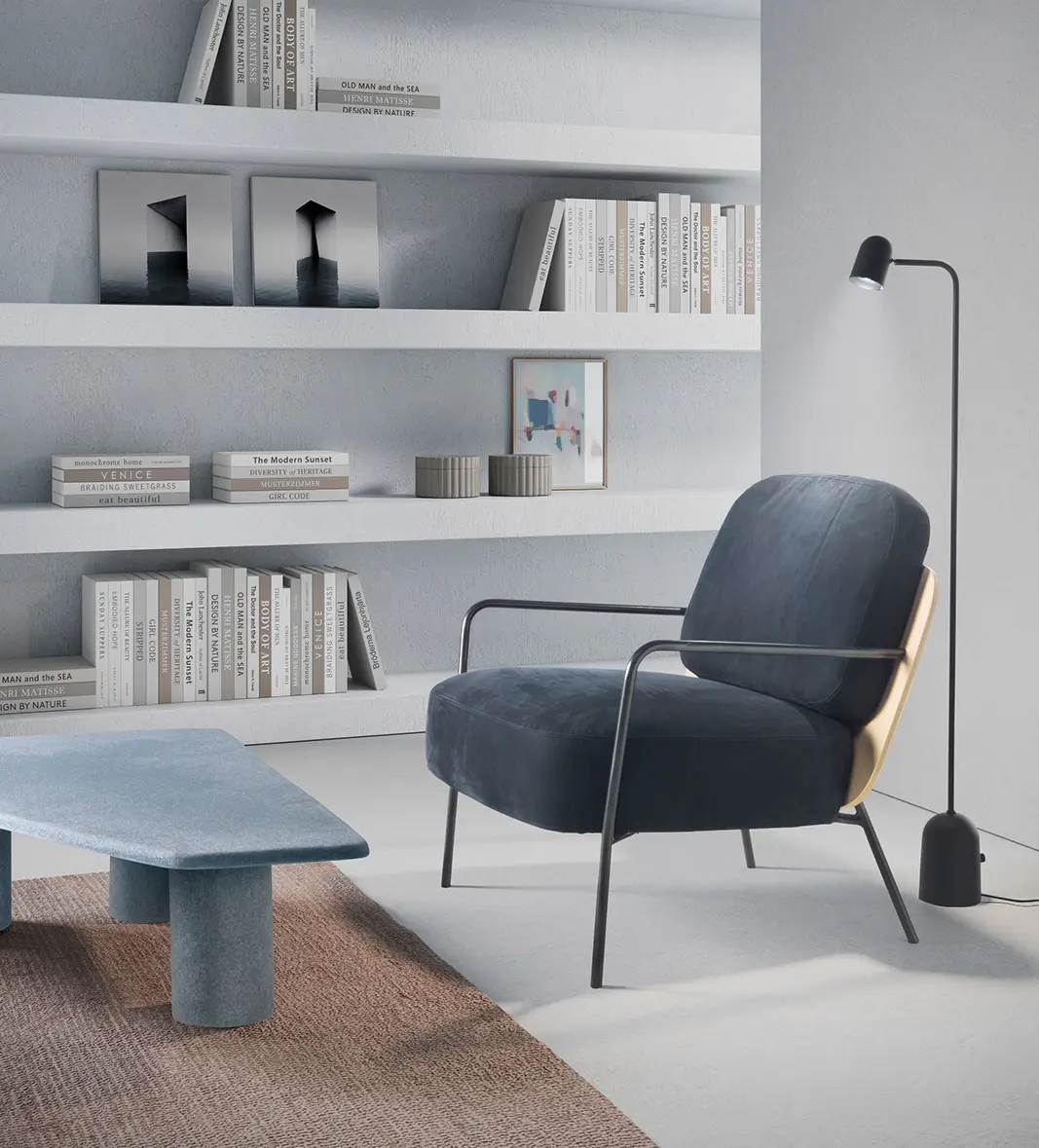 La combinazione dei materiali – metallo, legno e tessuti – è centrale nel definire l’identità della collezione. Il risultato è una proposta dallo spirito contemporaneo, che richiama nelle geometrie essenziali la schematicità del design nordico, reinterpretata attraverso il gusto e la sensibilità del design italiano.