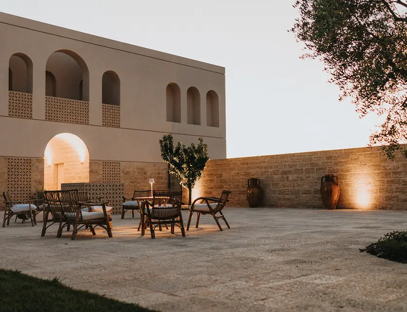 Il Giardino Grande è una dimora storica datata seconda metà dell’800, un tempo residenza estiva di una famiglia aristocratica. In questa suggestiva oasi rurale che invita al relax e alla rigenerazione, le giornate sono scandite dal canto delle cicale e dalla brezza marina, ed è un piacere godersi ogni angolo della dimora dove storia, natura, design e artigianato si intrecciano in una sinfonia di forme e colori d’artista: il Casino riprende l’architettura salentina tradizionale nelle sei eleganti camere che conservano il fascino del Salento con volte a botte o a stella, pavimenti in cocciopesto e pareti intonacate a calce; nelle spaziose corti e nelle terrazze panoramiche, nei giardini ornamentali con pergolati, pozzi e sentieri, e nelle tonalità calde e avvolgenti che richiamano i colori della terra ed esaltano la materia.