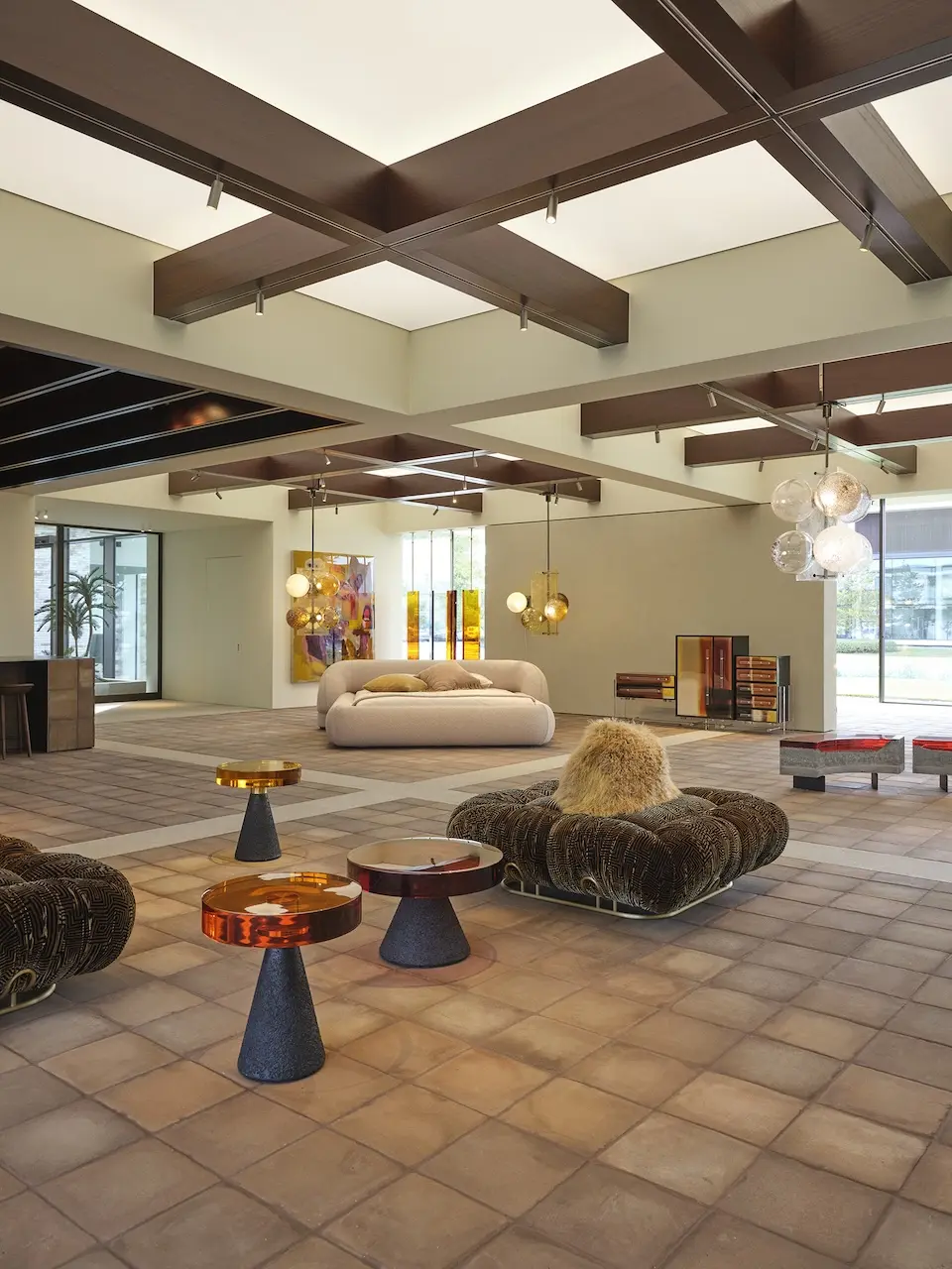 La materia diventa terreno di sperimentazione, di ricerca e di ispirazione. La resina epossidica, a rivestimento o a spessore, trasforma gli oggetti del passato e disegna nuovi scenari di luce e colore. Il cemento, a contrasto, invita a una riflessione intima con le sue trame decise. Accanto ad essi, per la prima volta, il vetro soffiato lavorato nelle fornaci di Murano: simbolo di eccellenza, manualità e tradizione.