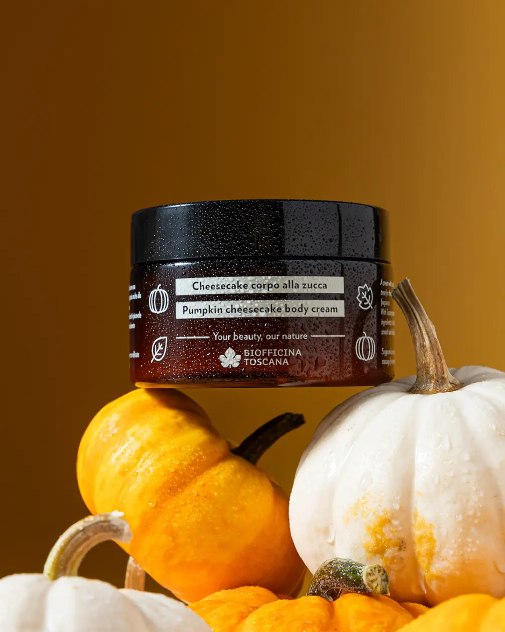 Per celebrare l’autunno, Biofficina Toscana lancia un’edizione limitata della nuova Cheescake Corpo alla Zucca da 100ml. Si tratta di una crema dalla consistenza morbida e simile a quella di una cheesecake ed esibisce ingredienti simbolo di questo periodo dell’anno e precisamente “la zucca”.