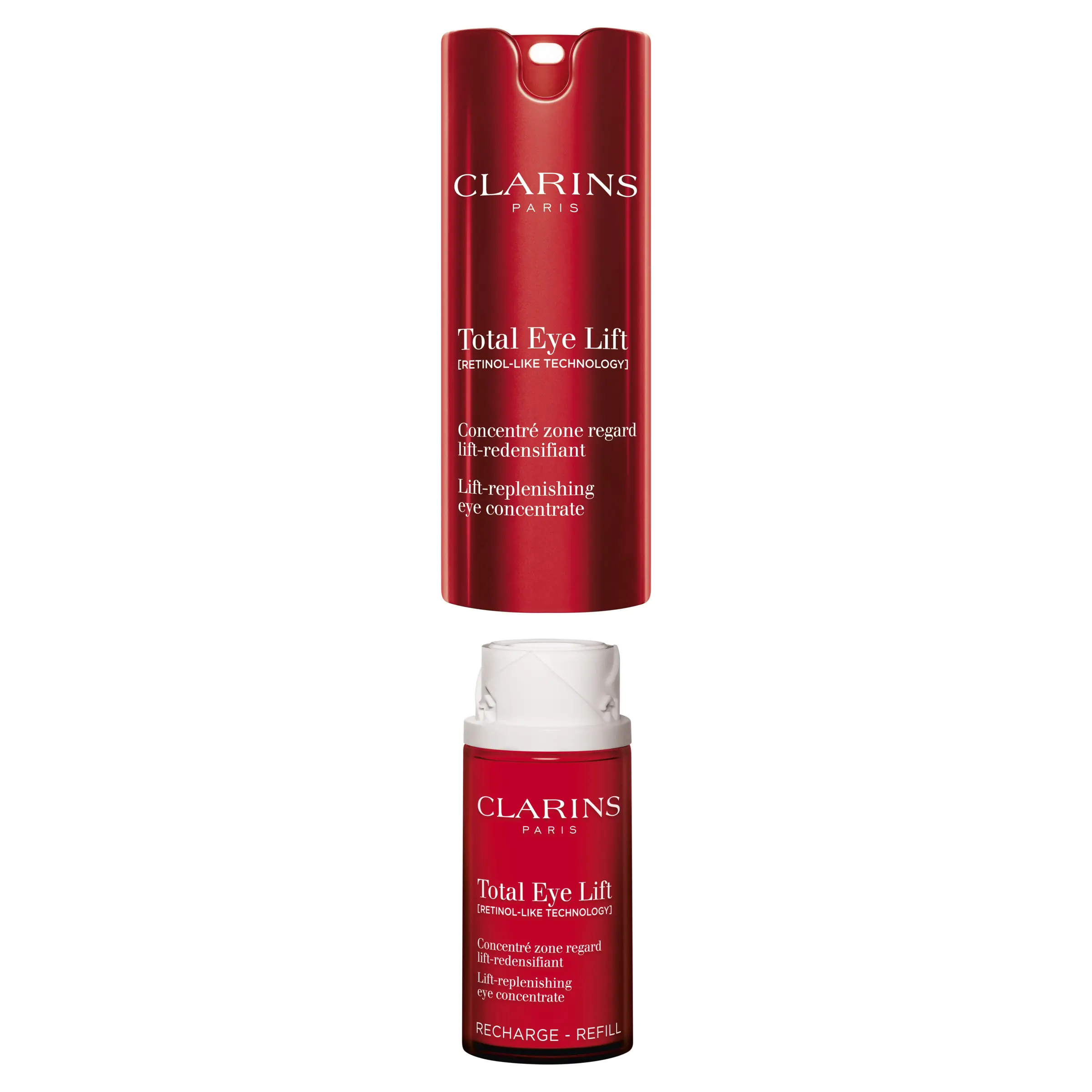 Poiché per Clarins limitare l’impatto ambientale dei suoi prodotti è una priorità, il nuovo Total Eye Lift è racchiuso in un flacone ricaricabile in alluminio airless. Grazie al sistema push & pull, si ricarica in modo rapido e intuitivo: basta un clic e il flacone è subito pronto per le successive applicazioni.