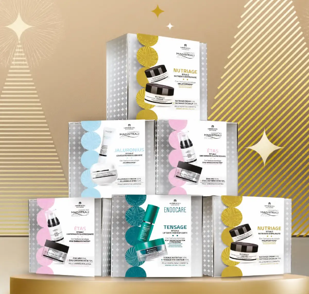 Per il Natale 2025, Cosmetici Magistrali ed Endocare propongono quattro cofanetti in edizione limitata, vere e proprie box-rituali dedicate a specifici bisogni della pelle. Ogni cofanetto contiene due referenze in formato full size, con un pack elegante a chiusura magnetica, già pronto da mettere sotto l’albero. Il tutto a un prezzo speciale, con riduzioni fino al 30% rispetto al prezzo dei singoli prodotti.