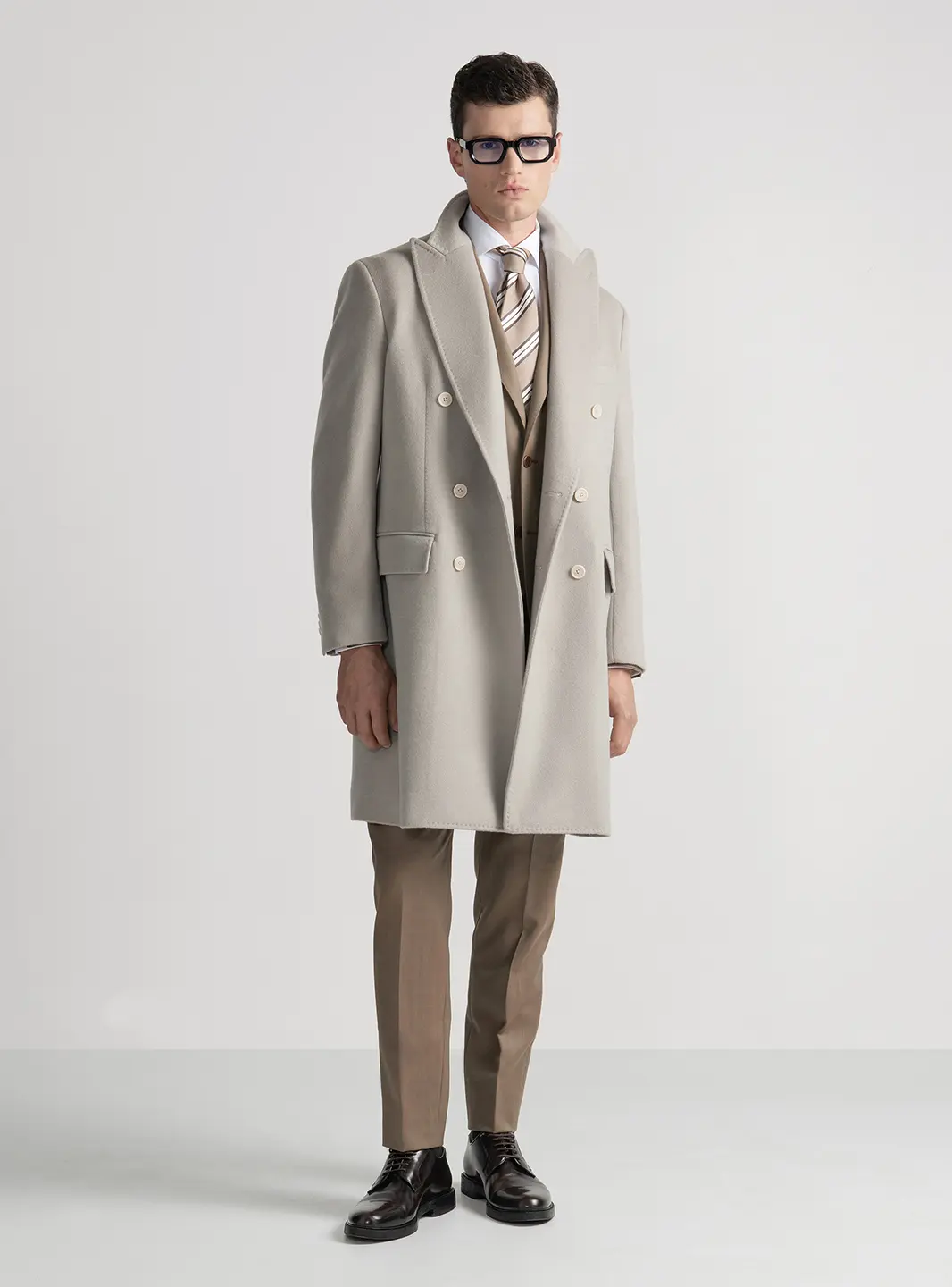 A completare la proposta, l’iconico cappotto doppiopetto in cashmere: un capospalla che rappresenta il perfetto equilibrio tra struttura e morbidezza. Il suo design classico, reso attuale da linee pulite e costruzione impeccabile, lo rende adatto sia ad abbinamenti formali che a outfit più rilassati con denim o pantaloni in lana. Una collezione che parla di materiali puri, tattilità avvolgente e stile senza tempo.