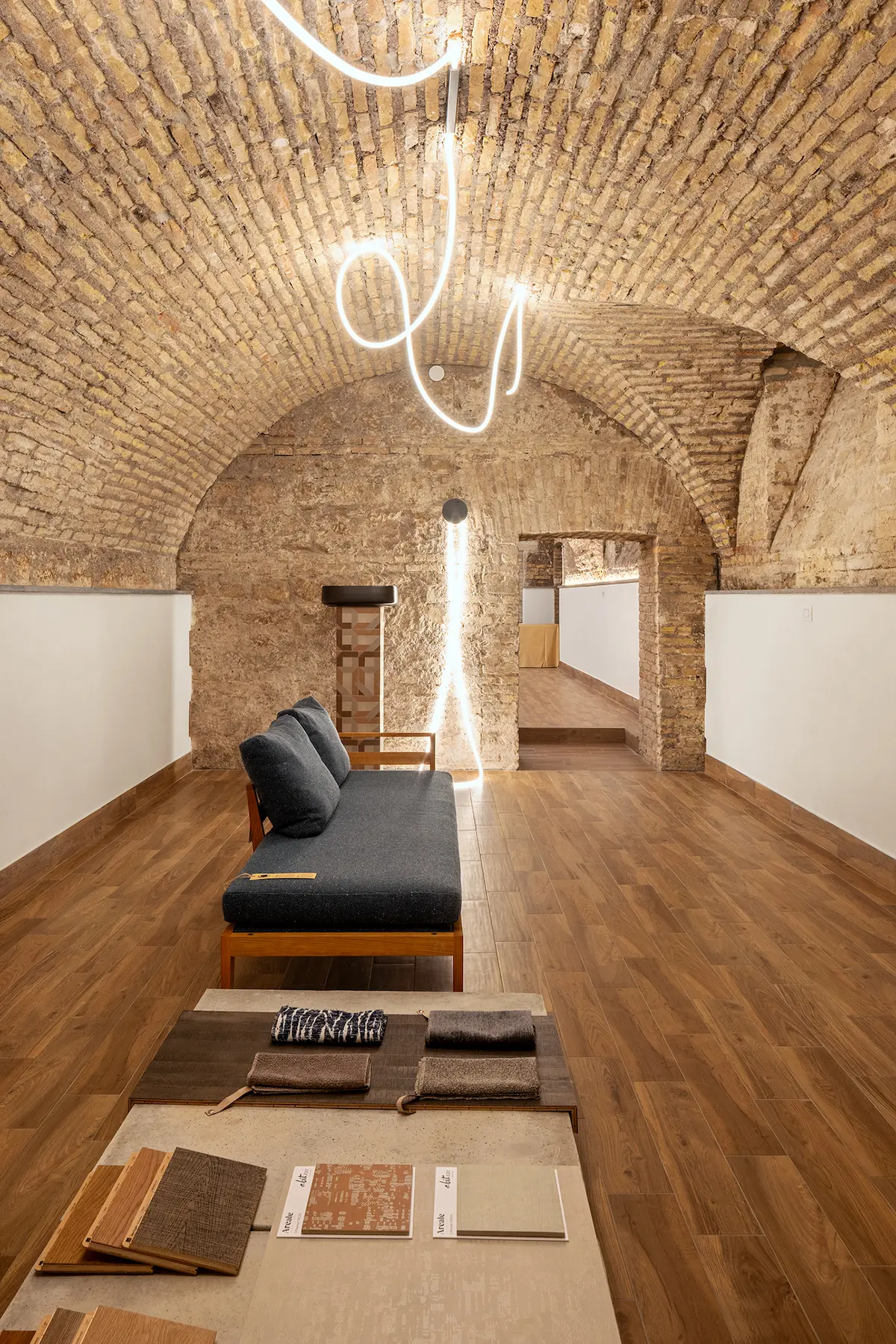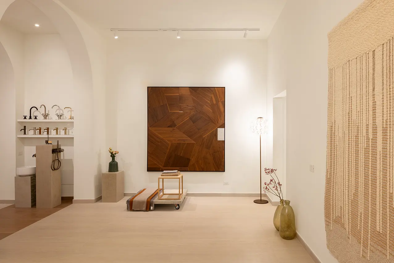 In questo luogo dinamico e collaborativo, progettato dallo Studio Tanzi Architecture, le ceramiche di Abitzai esprimono la bellezza e la sostanza del territorio d’origine – tra cui spicca la collezione Origini del designer Celestino Sanna – accanto ad alcuni dei più importanti brand italiani dell’interior design: gli arredi di Plinio il Giovane, i tessuti di Dino Zoli Textile, il legno di Listone Giordano, le luci di Sforzin Illuminazione, i miscelatori di Fima – Carlo Frattini e i tappeti di Mariantonia Urru. Un percorso sensoriale unico che valorizza materia, luce e superficie come elementi centrali di un nuovo abitare, volto a promuovere la cultura del design mediterraneo contemporaneo e a creare connessioni tra produttori, artigiani, architetti e designer.