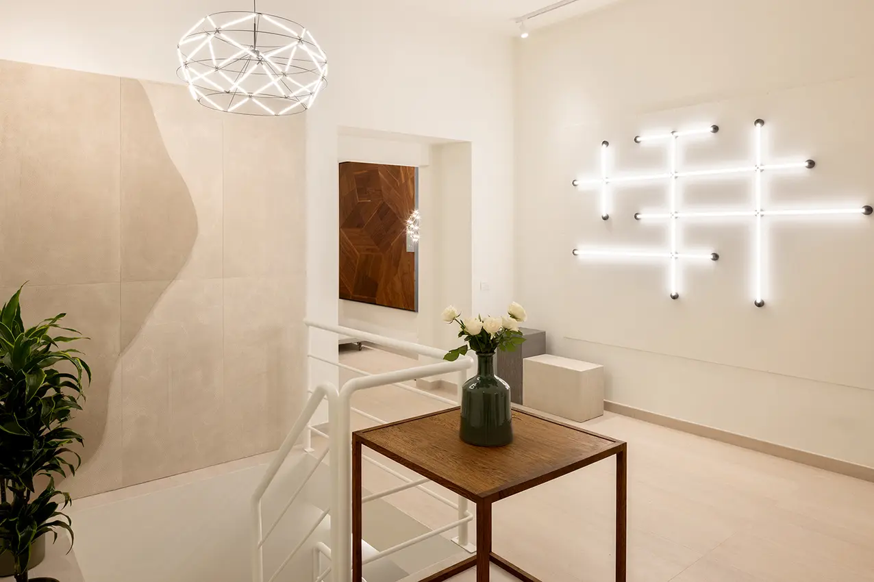 Abitzai Project si sviluppa su una superficie di circa 300 mq distribuiti su due piani. Il piano terra si affaccia sulla strada con due ampie vetrine, da cui ammirare le collezioni e intraprendere un percorso pensato per immergersi in atmosfere eleganti alla scoperta dei brand che abitano lo spazio. L’ampio ambiente del piano interrato, dove prosegue l’esposizione, ospiterà incontri, workshop ed eventi: la casa romana di chi desidera sperimentare e giocare con il design.
