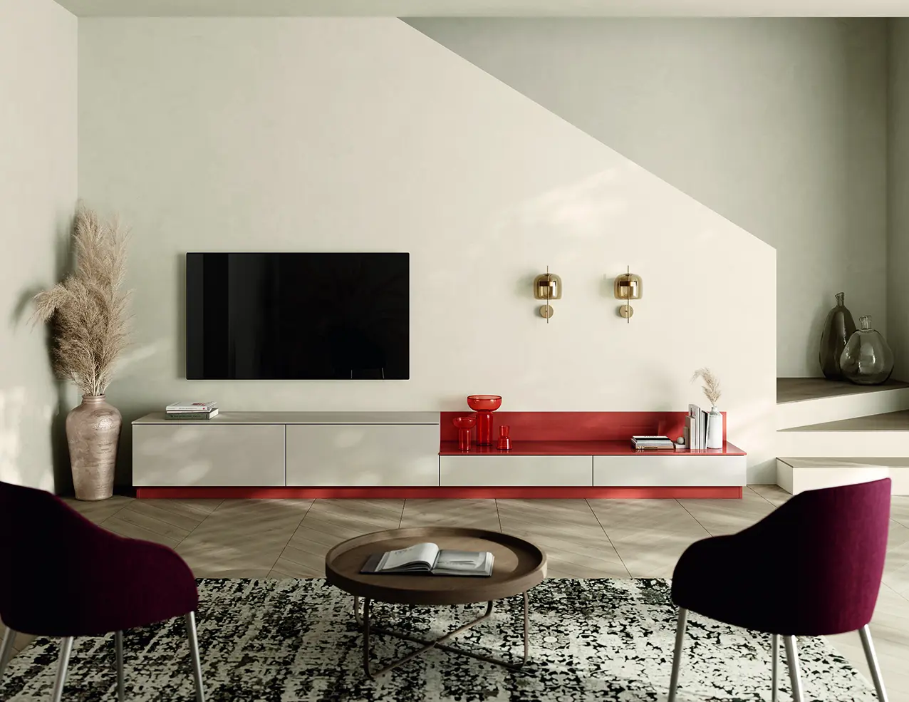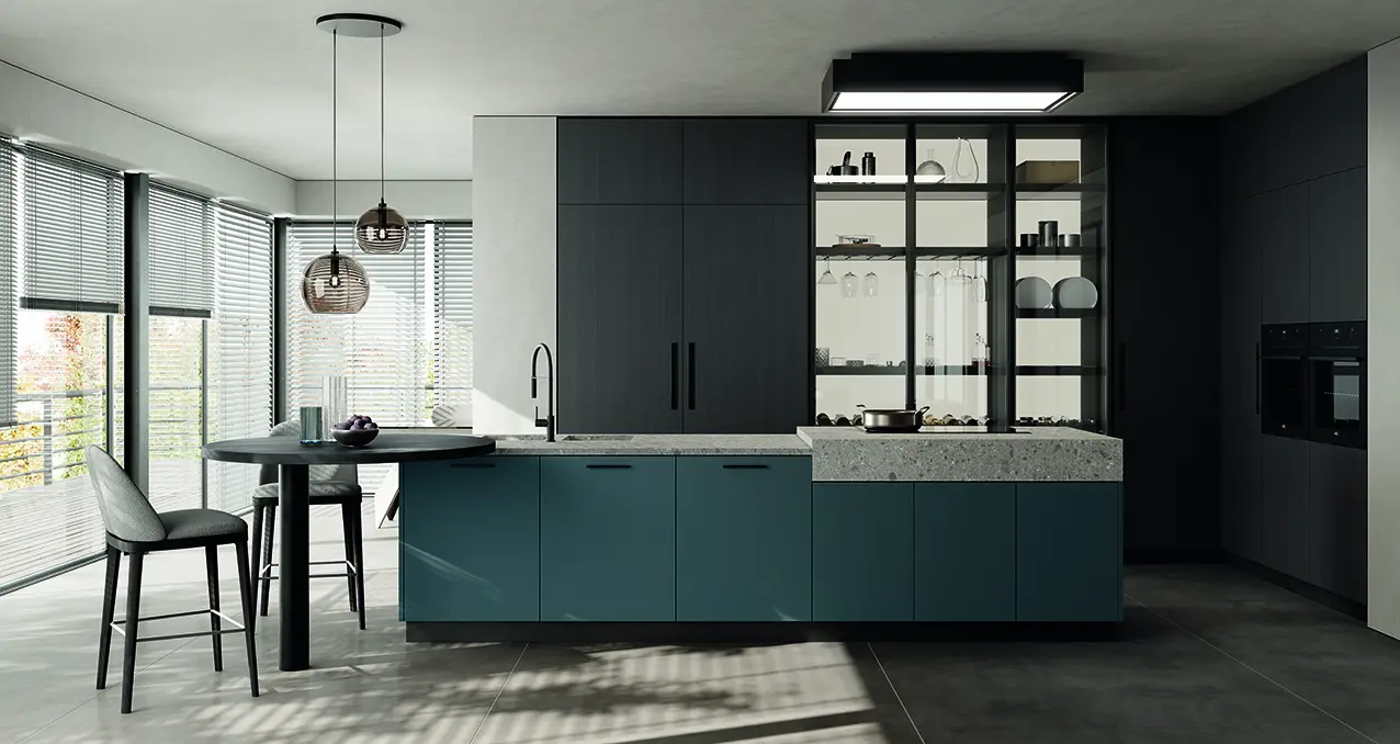 Le ante da 2,2 cm spaziano dai laccati lucidi e opachi, effetto metal, laminati e laminati Strips, oleomalte, decorativi, vetro e gres con supporto in alluminio, fino agli impiallacciati, Fenix NTM e PET. La versione da 1,8 cm, invece, si distingue per una selezione accurata di colori e materiali, dai laccati lucidi e opachi, ai decorativi e PET.