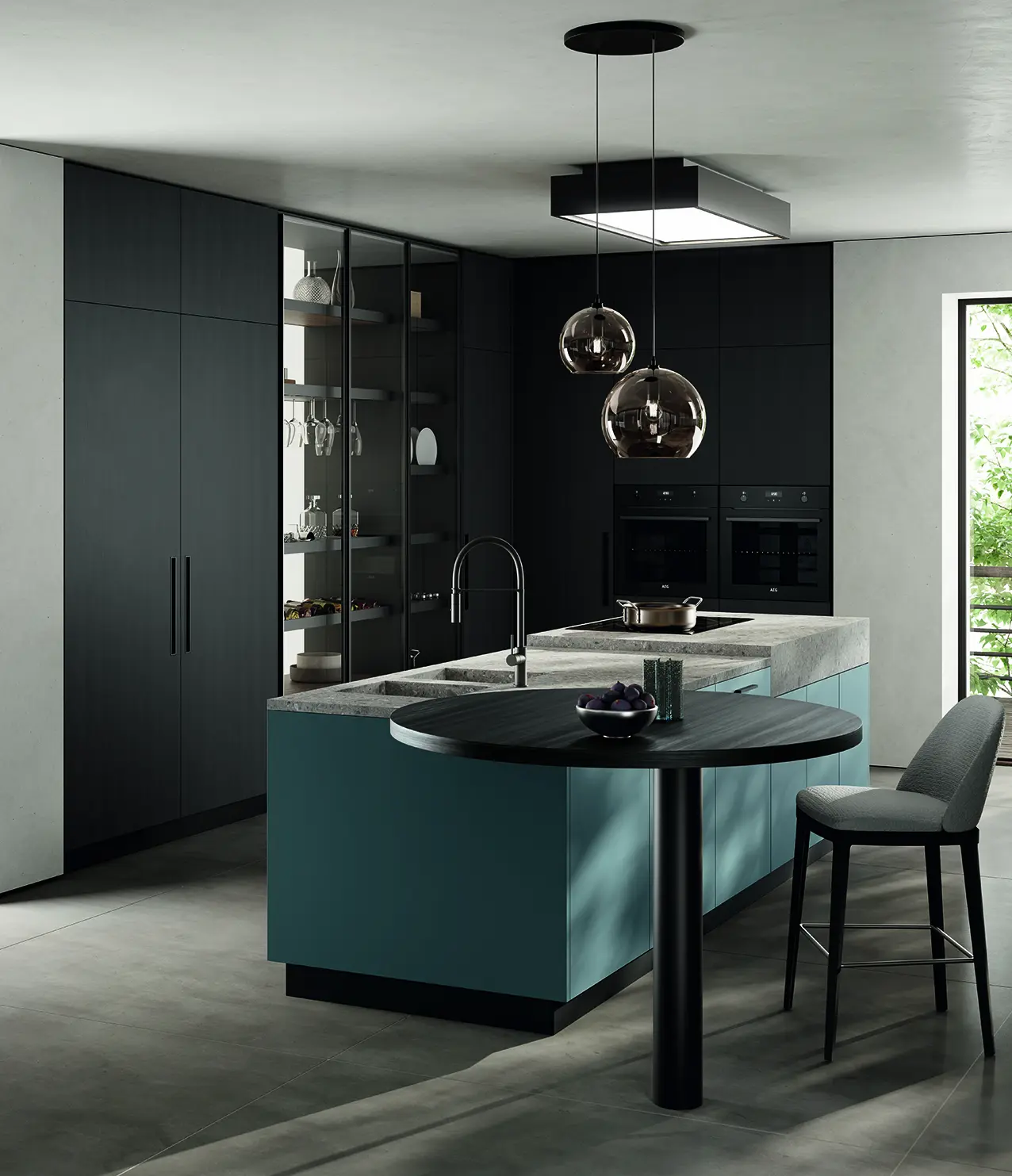 Le ante da 2,2 cm spaziano dai laccati lucidi e opachi, effetto metal, laminati e laminati Strips, oleomalte, decorativi, vetro e gres con supporto in alluminio, fino agli impiallacciati, Fenix NTM e PET. La versione da 1,8 cm, invece, si distingue per una selezione accurata di colori e materiali, dai laccati lucidi e opachi, ai decorativi e PET.