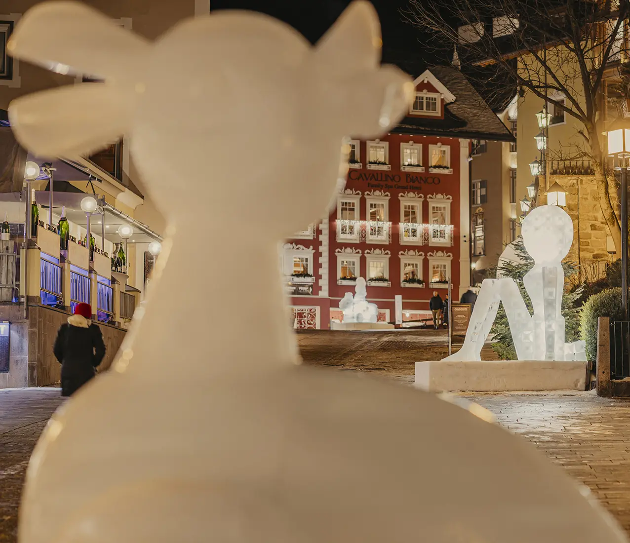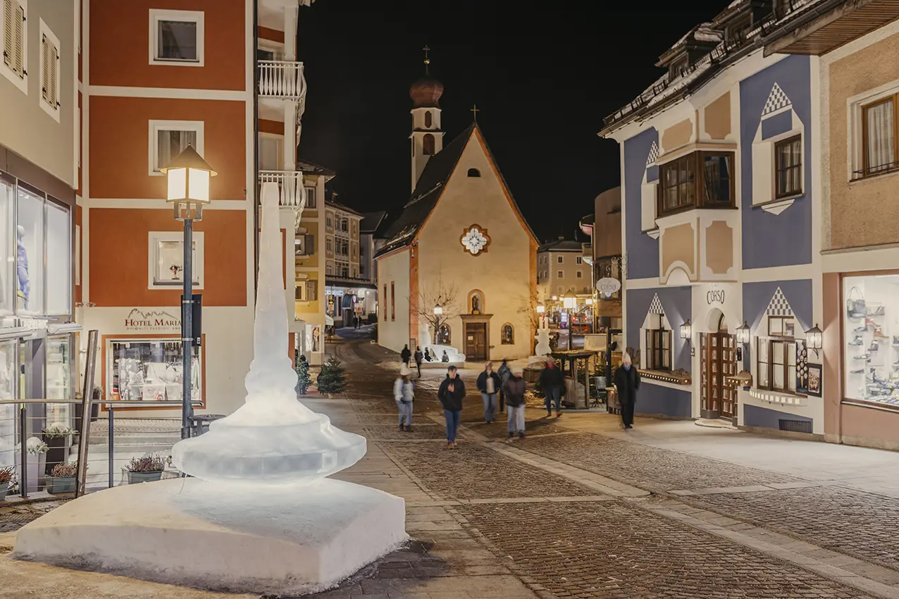 L’arte della scultura in Val Gardena si adegua alle stagioni. I maestri gardenesi, scultori conosciuti e apprezzati nel mondo, durante i mesi invernali non realizzano solo sculture tradizionali in legno ma si dedicano anche a iniziative particolari, come scolpire il ghiaccio. In particolare, a gennaio le fredde temperature invernali permettono la realizzazione di un evento “Figure di ghiaccio” che consente agli artisti locali e alcuni studenti di decorare la zona pedonale di Ortisei con imponenti figure di ghiaccio che incantano i visitatori fino alla primavera.