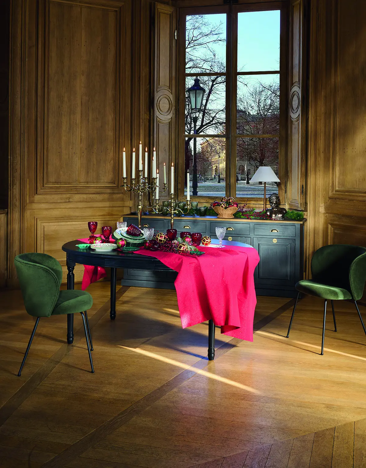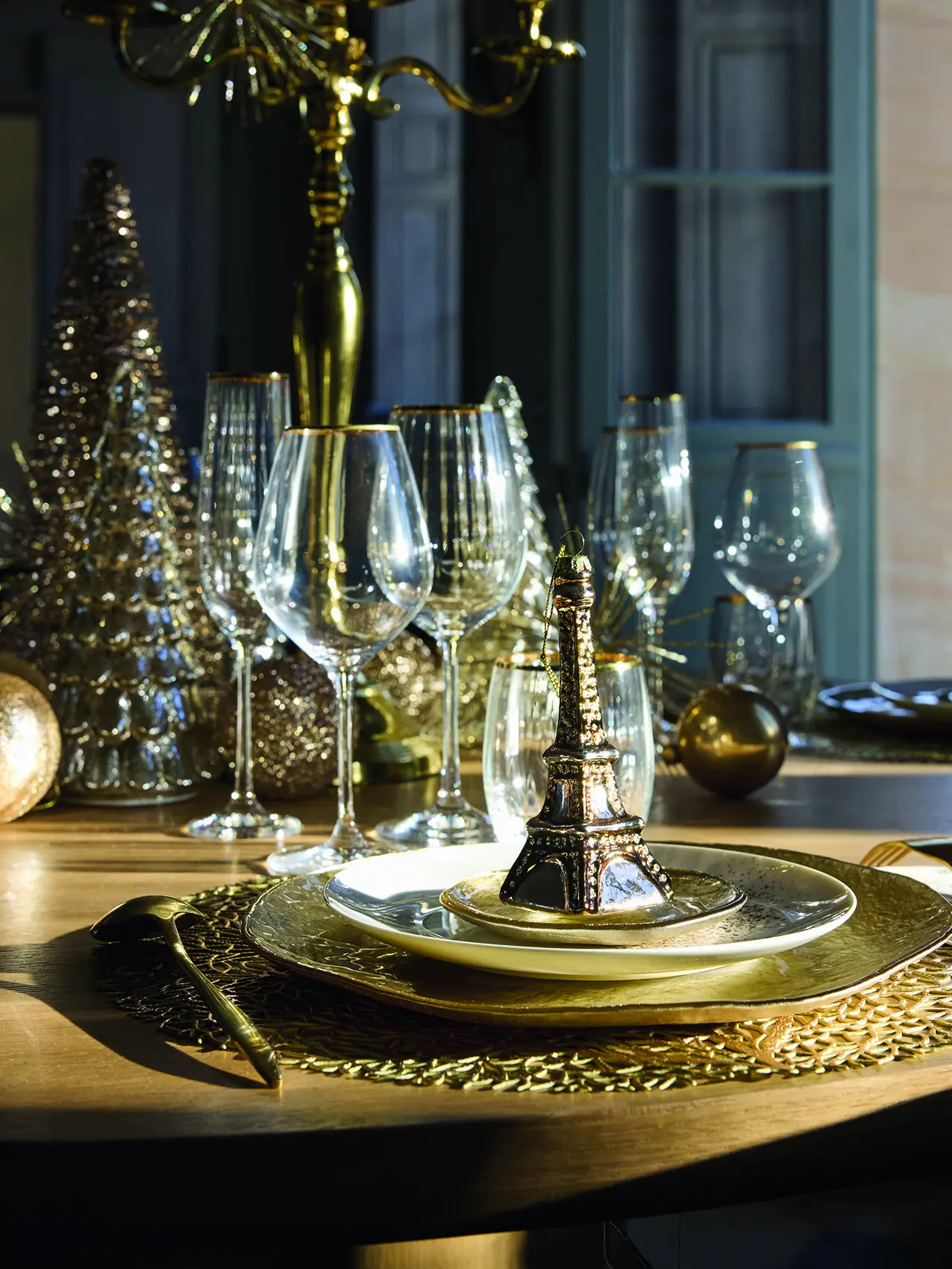 Nel cuore della capitale, in un grande appartamento haussmanniano, si apre una tavola chic e glamour. Ispirati ai codici del lusso alla francese, i servizi di piatti dorati, i flute da champagne scintillanti e i candelabri d’epoca vestono la tavola con un’eleganza senza tempo. I piatti raffinati si susseguono delicatamente, mentre l’atmosfera calda invita a godersi ogni momento, tra risate e complicità.
