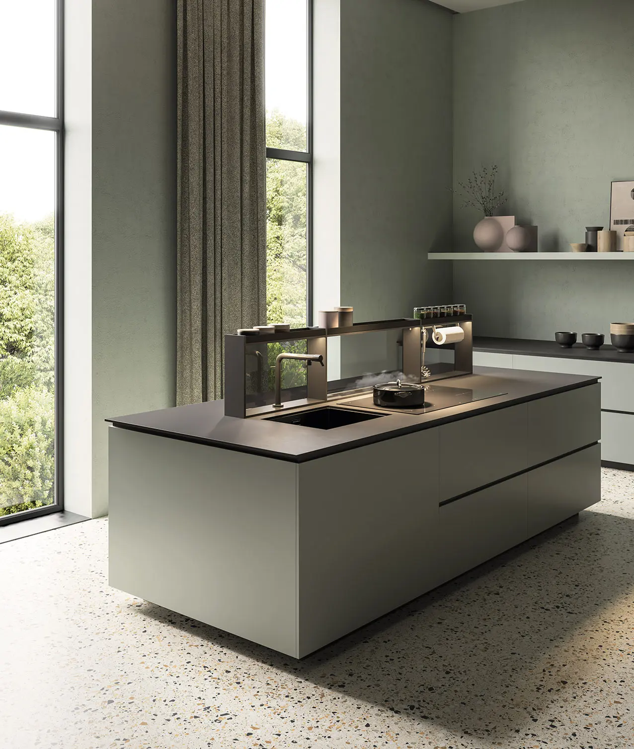 A completare l’intera struttura, un’illuminazione dinamica e dimmerabile che permette di cucinare con il massimo comfort visivo e allo stesso tempo creare una luce ambientale in cucina.