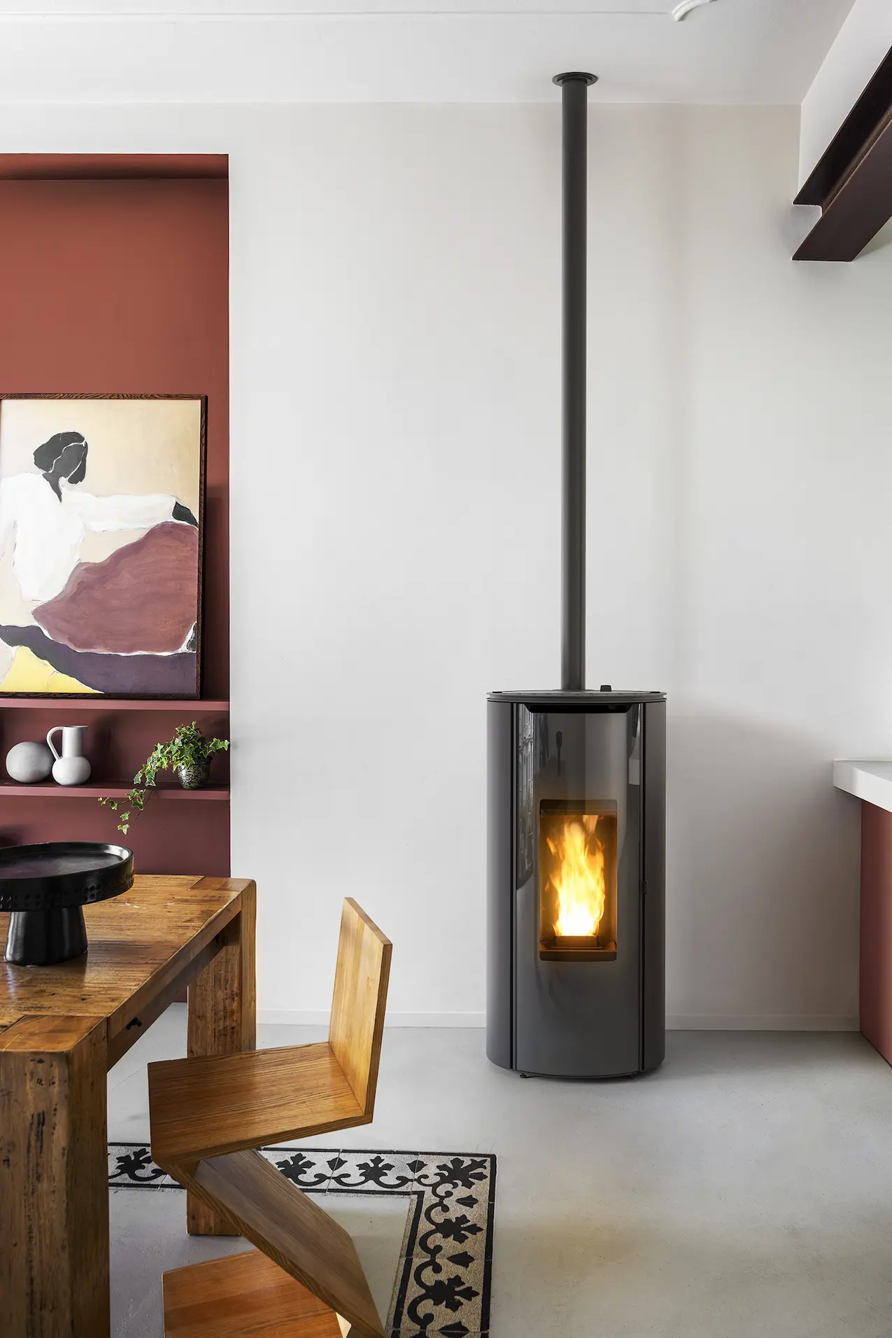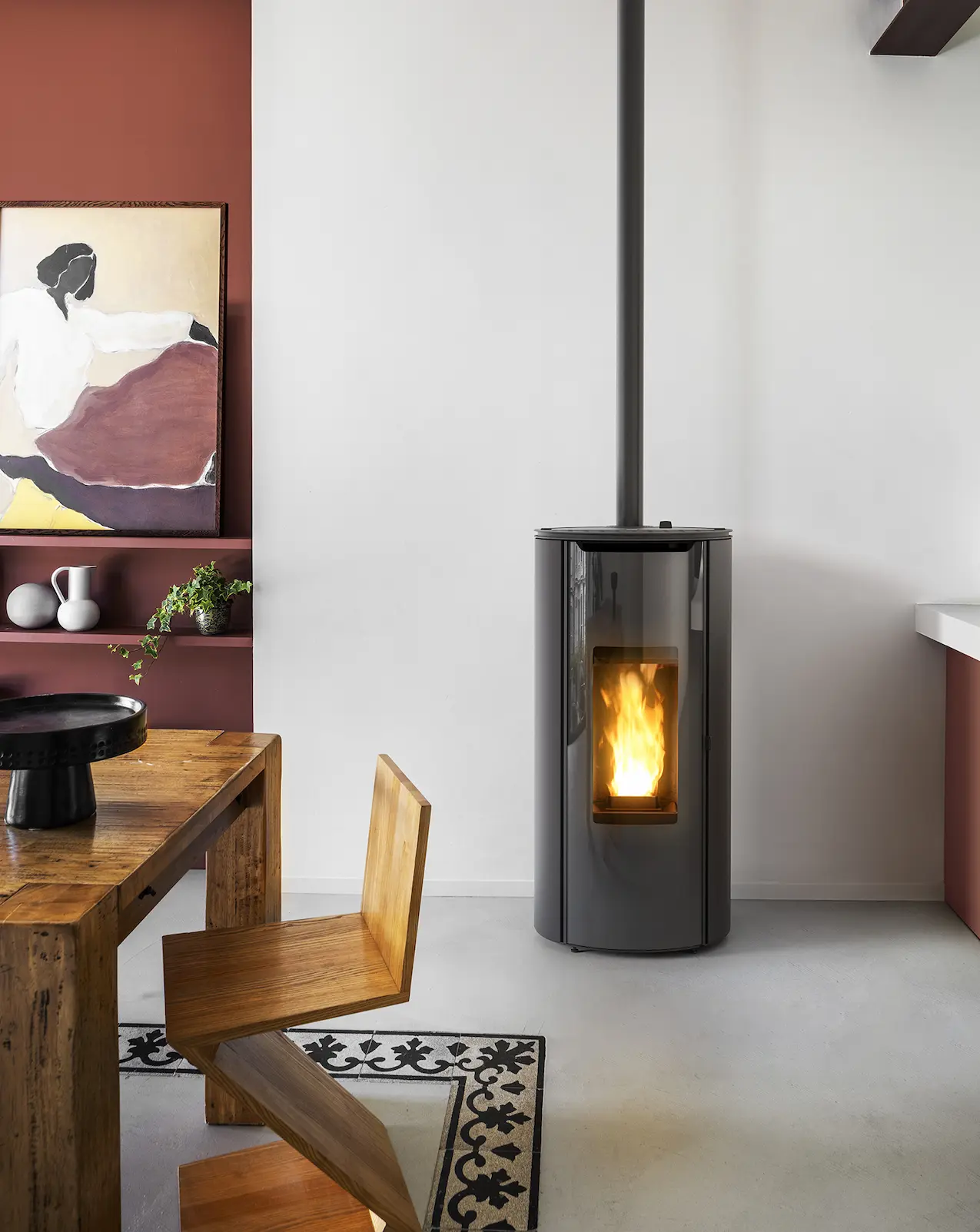 Mini, la stufa a pellet, si distingue per la sua forma rotonda e il profilo compatto, con un’altezza più contenuta rispetto alle altre stufe della gamma MCZ, che ne migliora l’accessibilità e rende più semplice il caricamento del pellet.