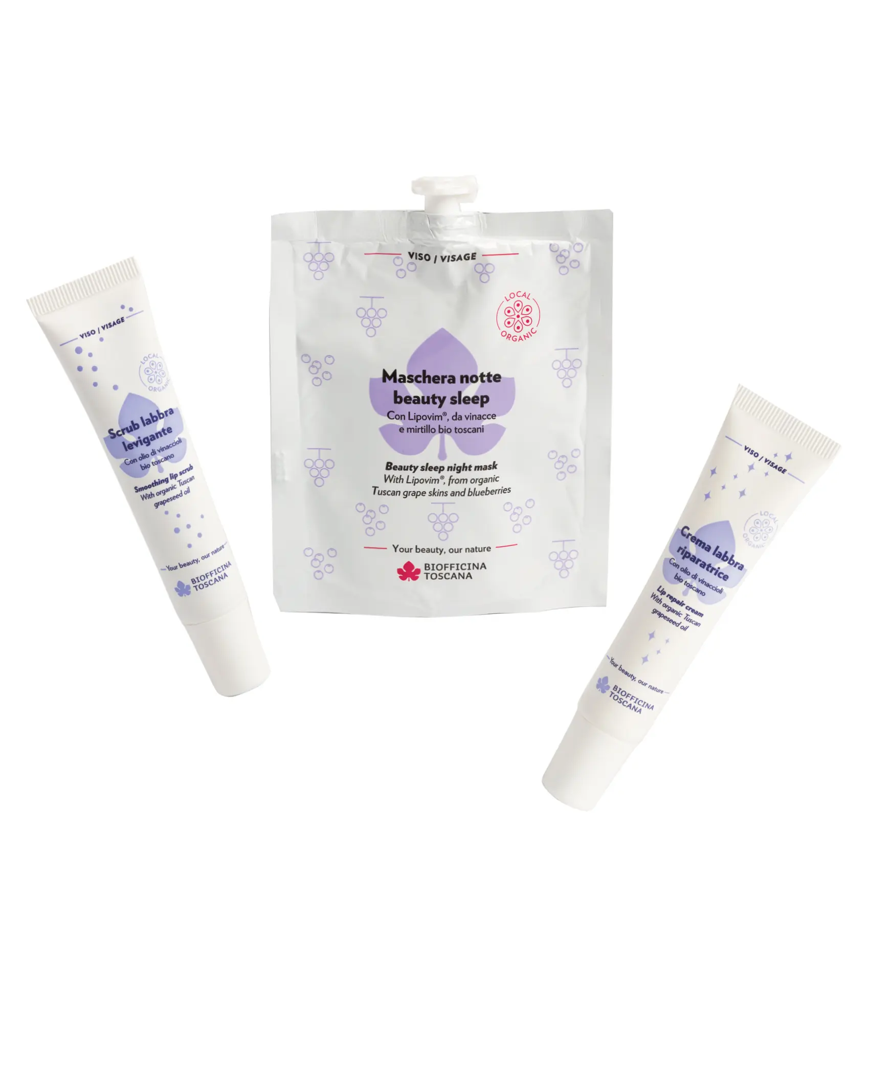 Scrub Labbra Levigante & Crema Labbra Riparatrice con olio di vinaccioli bio toscano