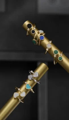 Brio nasce da un’ispirazione precisa: quella di trasformare il gioiello in un gesto quotidiano, leggero e pieno di energia. Un’eleganza naturale, spontanea, che si manifesta attraverso forme morbide – cerchi e cuori – e un sapiente uso del colore, caratteristico del marchio Tavanti. Le pietre naturali come madreperla, malachite, onice, lapislazzuli, turchese e kogolong incontrano l’oro 18 carati, dando vita a una palette raffinata che alterna toni caldi e freddi in un gioco visivo elegante e mai eccessivo.