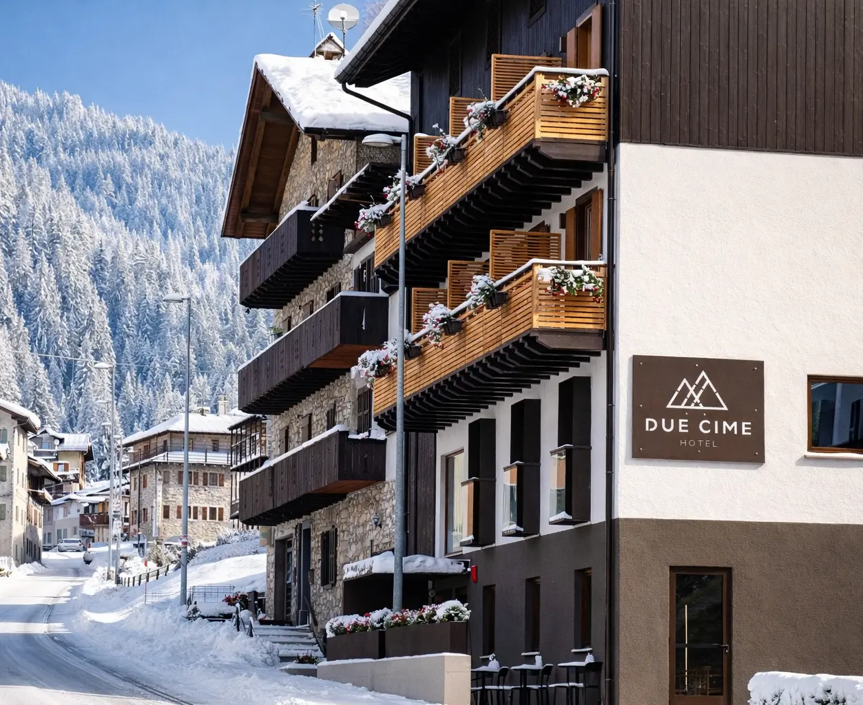 Inaugurato nell’estate 2025 dalle sorelle Federica ed Elisabetta Gortani, Hotel Due Cime nasce dalla riqualificazione dello storico Hotel Roma, oggi trasformato in una struttura contemporanea che dialoga con il territorio senza rinunciare al comfort.