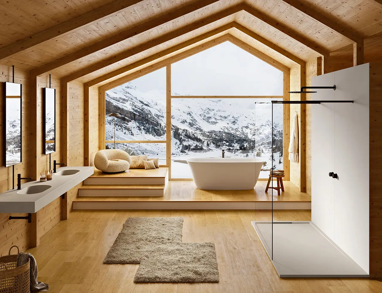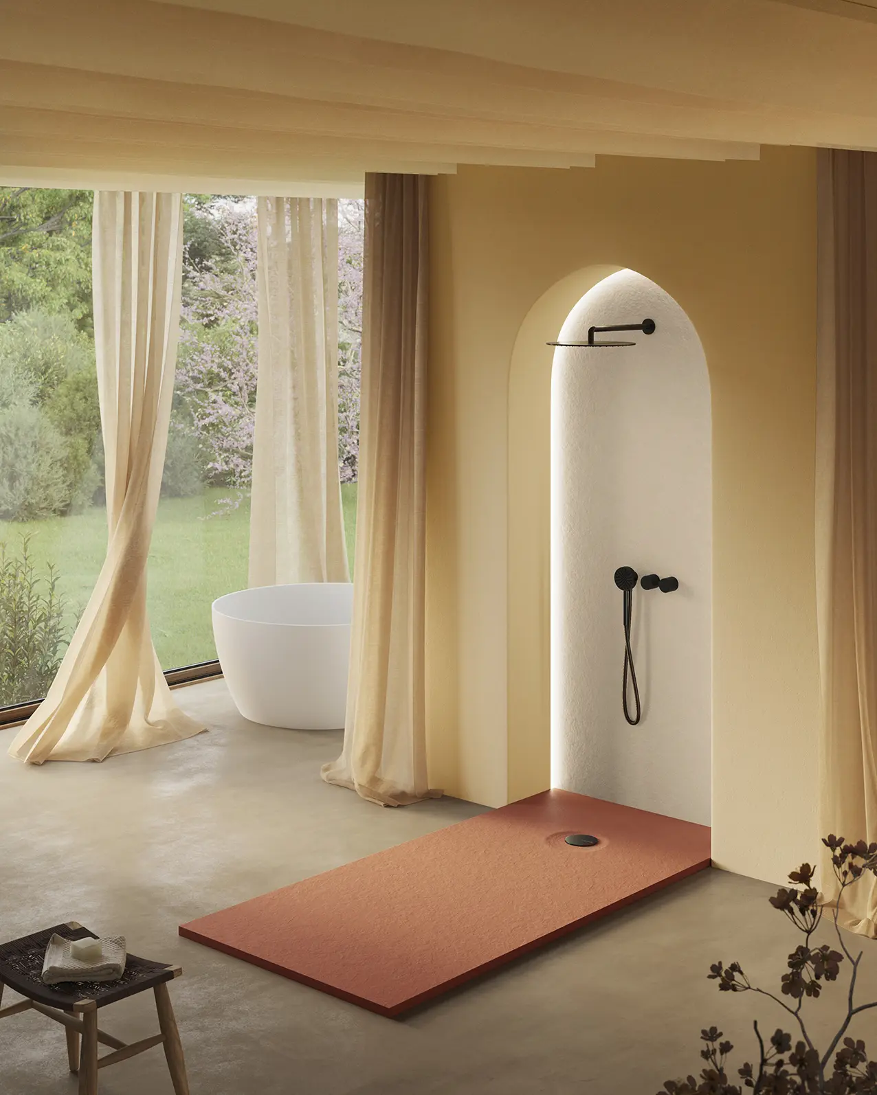 Entrambi gli elementi sono realizzati in Akron®, materiale che si distingue per la sua facilità di lavorazione. Akron® può essere, infatti, tagliato con estrema precisione per ottenere misure precise al millimetro e adattarsi perfettamente anche a spazi non standard. Questo permette una corrispondenza totale tra pannello murale e piatto doccia, evitando adattamenti forzati che potrebbero compromettere stabilità strutturale e impermeabilità dell’area doccia.