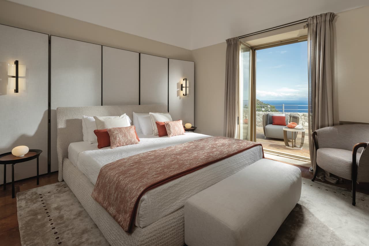 Un capolavoro di bellezza, a picco sul mare, dove cielo e terra sembrano toccarsi. A Capri, incastonata su una scogliera sopra la Marina Piccola, sorge sui resti di una delle ville dell’imperatore Tiberio e del successivo castello medievale Villa Castiglione, un’oasi di lusso che si affaccia sui Faraglioni, sul borgo, sulla costa meridionale dell’isola, con il golfo di Napoli all’orizzonte, offrendo lo scenario di un’esperienza indimenticabile.