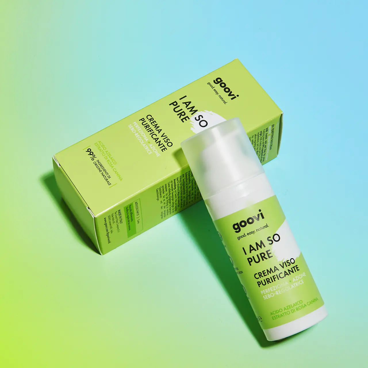 La beauty-routine goovi dedicata alle pelli miste prosegue con la Crema Viso ad azione Purificante, arricchita da Acido Azelaico e Zinco e con il 99% di ingredienti di origine naturale, contribuisce a diminuire le imperfezioni agendo sulla produzione sebo e perfeziona l’incarnato riducendo la visibilità dei pori. La nuova Crema Viso Purificante contiene inoltre Rosa canina ad effetto opacizzante, Allantoina ad azione lenitiva e idratante e un pool di Oligosaccaridi ad azione probiotica per riequilibrare la flora batterica e barriera cutanea regolando la produzione di sebo migliorando visibilmente l’idratazione della pelle. La sua texture leggera si assorbe rapidamente lasciando la pelle morbida, idratata e opacizzata, ideale per pelli, miste, grasse o soggette ad imperfezioni. Dermatologicamen