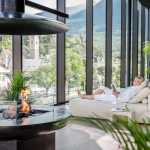 - Favolosa zona relax per ricrearsi con lettini accoglienti e caminetto aperto. Grazie all’utilizzo di ampi vetri, è garantita la vista sul centro storico di Merano