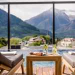 - Un’ampia zona sauna e zona relax con vista spettacolare sul centro storico di Merano, sul Kurhaus e le montagne nei dintorni. Interni di alta qualità con arredamento di materiali pregiati e luci calde. Alcuni dettagli: